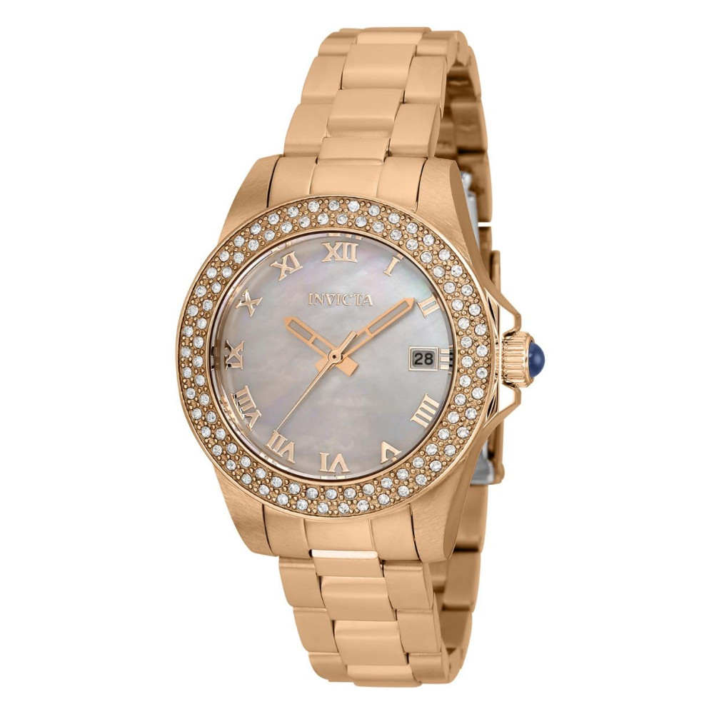 Relógio feminino Invicta Anjo com madreprola e ouro rosa – 34 mm.