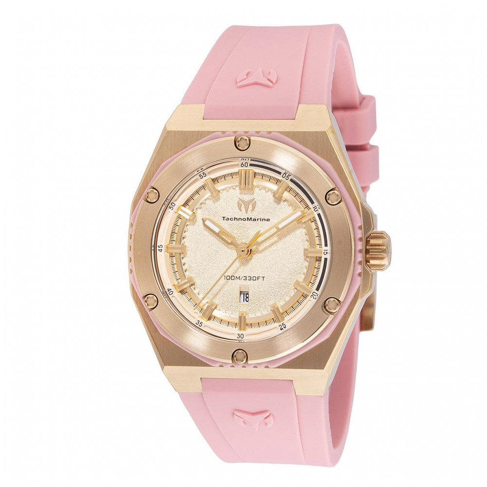 Apresentamos o deslumbrante relógio TechnoMarine da coleção Coral Legacy, impulsionado por um preciso movimento de Quartzo, com uma caixa rosa e dourada. Seu mostrador é decorado por um elegante mostrador de metal dourado e protegido por um resistente Cristal Mineral. Uma pulseira rosa completa este acessório que pode resistir à água por até 100 metros. Cada detalhe deste relógio é pensado para os corajosos de coração, oferecendo versatilidade e robustez para encarar as atividades mais aventureiras. Descubra o extenso catálogo da TechnoMarine e encontre seu novo acessório favorito. Em algumas instâncias, as cores nas imagens podem variar ligeiramente do produto real.