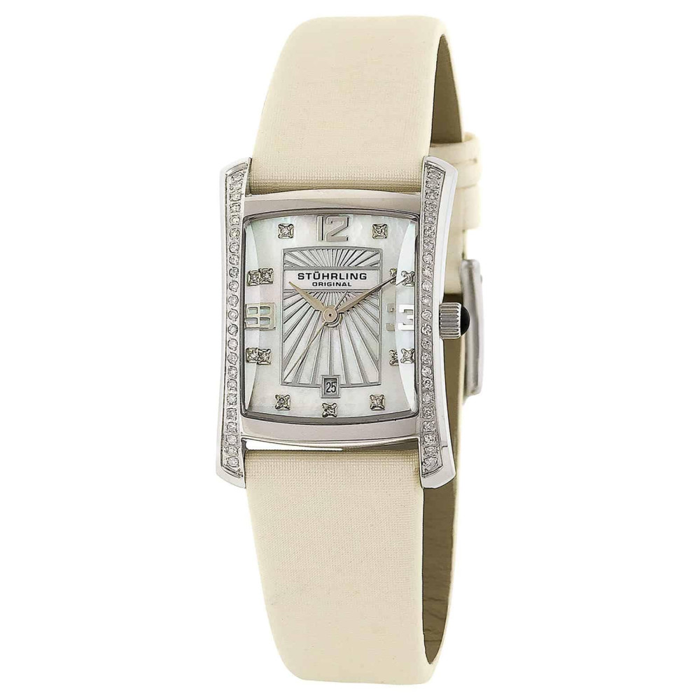 Relógio Margarida 145D 22mm com Mostrador Branco e Pulseira de Couro Marfim – Stuhrling Prata