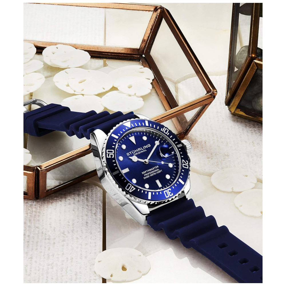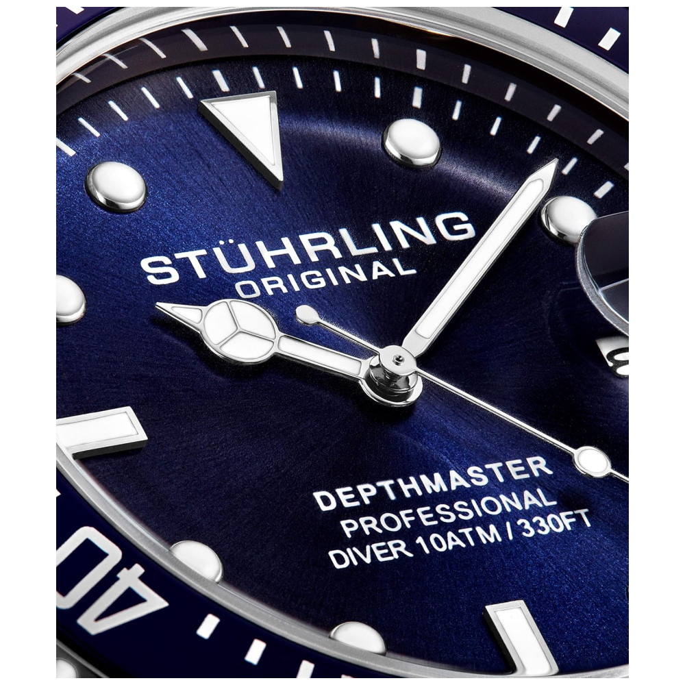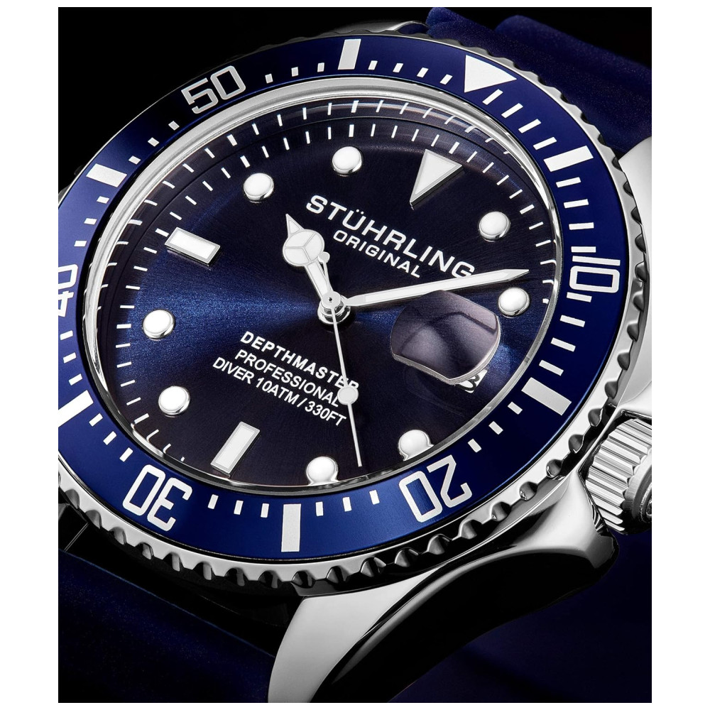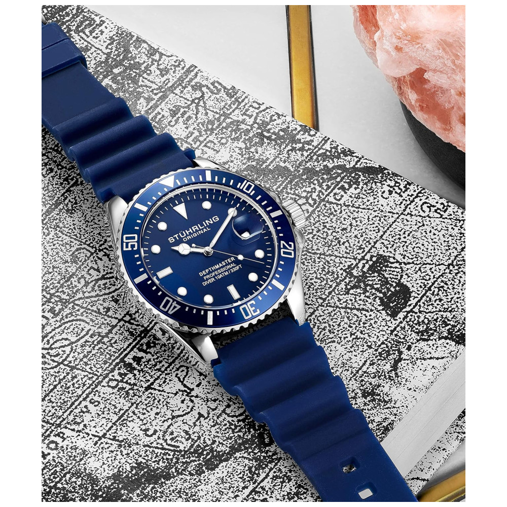 Relógio Masc Pro Diver Watch Quartz Prova D 100m STUHRLING 3950R.2 Azul Escuro