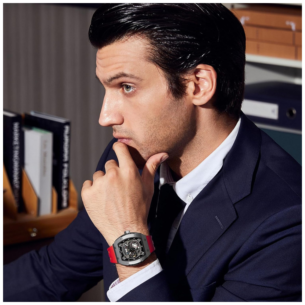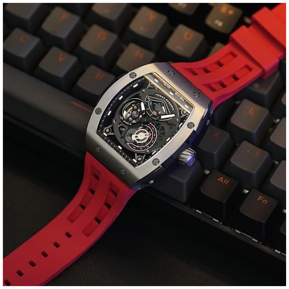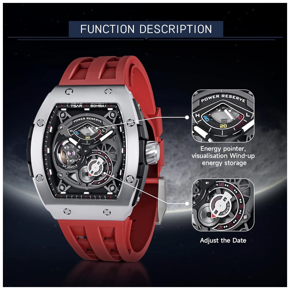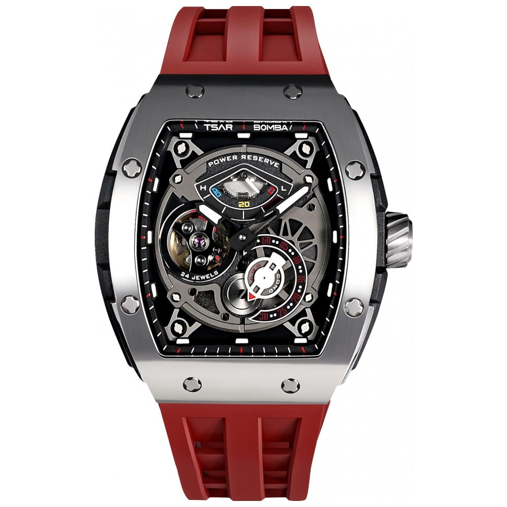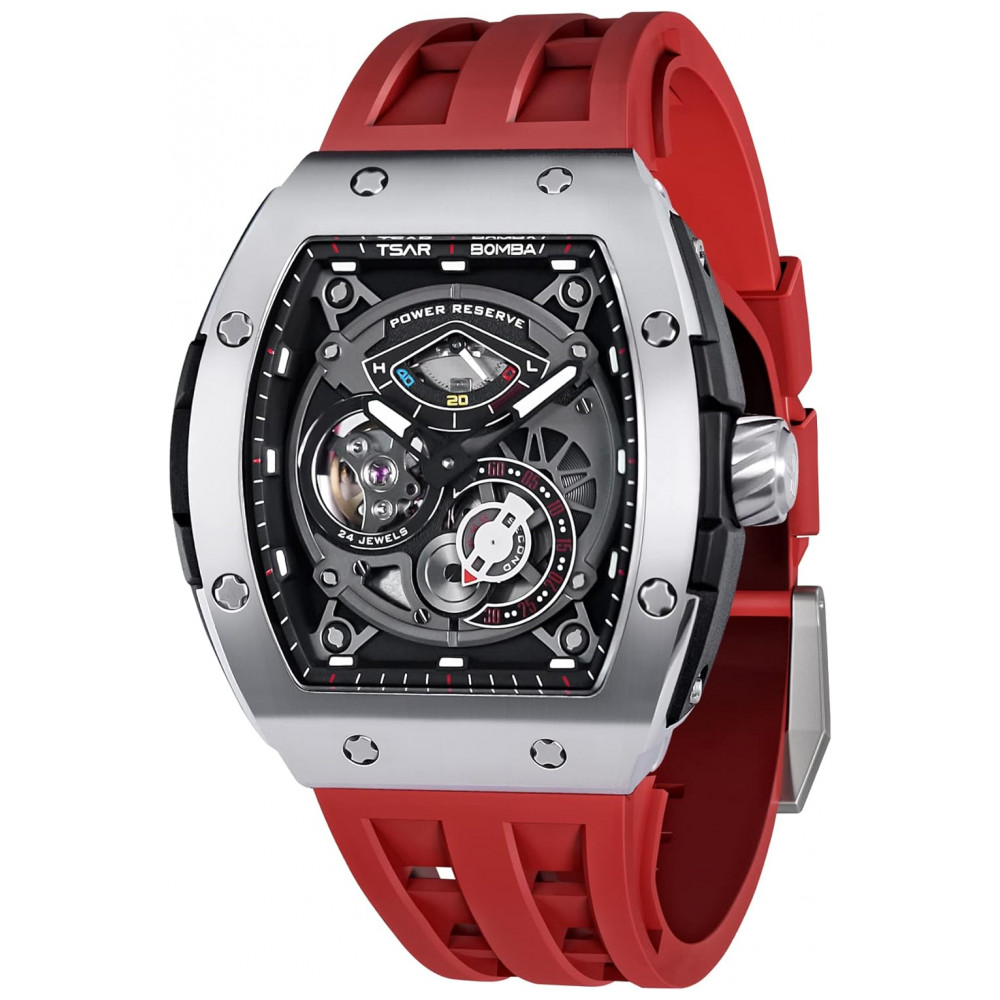 Relógio Masculino Analógico Automático a Prova dÁgua 50M com Pulseira de Silicone TSAR BOMBA SGLZ TB 8210 Vermelha