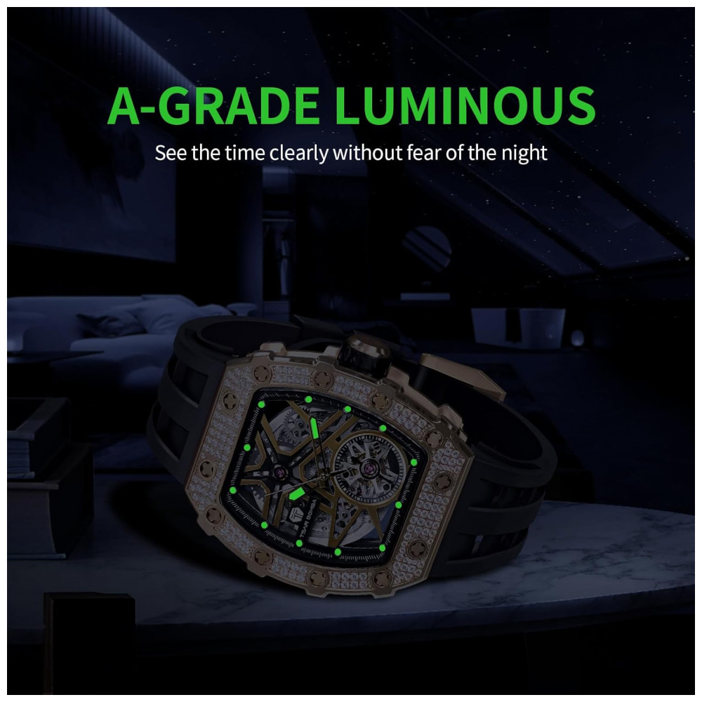 Fornece um tempo preciso e um zenamento de energia por 48 horas. O mostrador esqueletizado funciona para dar a você uma visão direta do movimento, tudo em detalhes impressionantes. Dia dos Namorados ou um aniversário, aniversário, casamento. Este relógio autêntico oferece uma experiência e visual brilhantes. Um bom relógio é reflexo da busca constante pela qualidade, TSAR BOMBA é o presente perfeito para um ente querido ou para você mesmo.