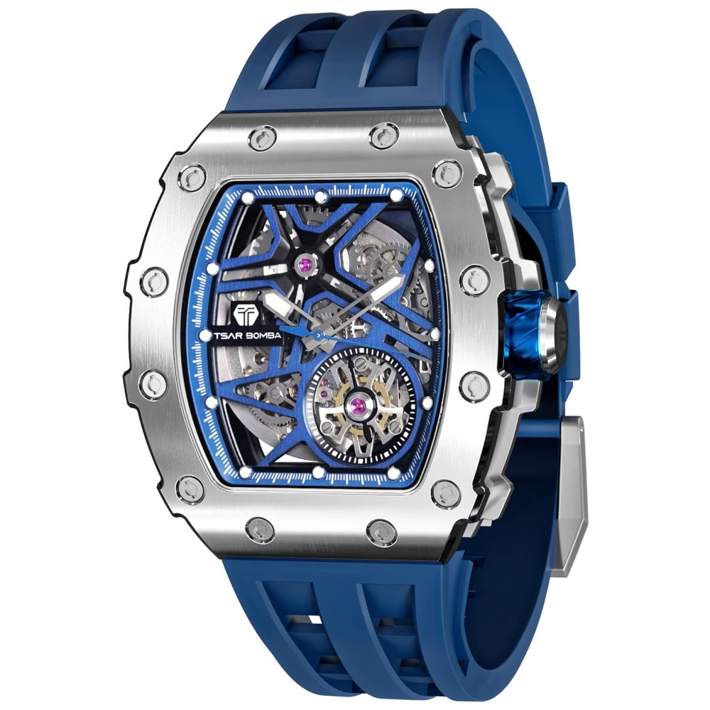 Relógio Masculino Analógico Automático a Prova dÁgua 50M com Pulseira de Silicone TSAR BOMBA TB 820679SGLZ Azul