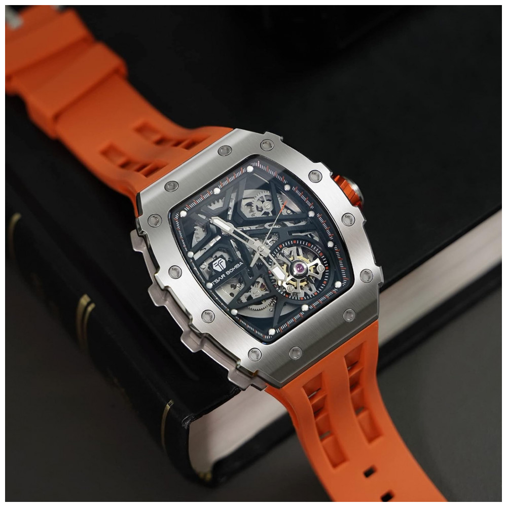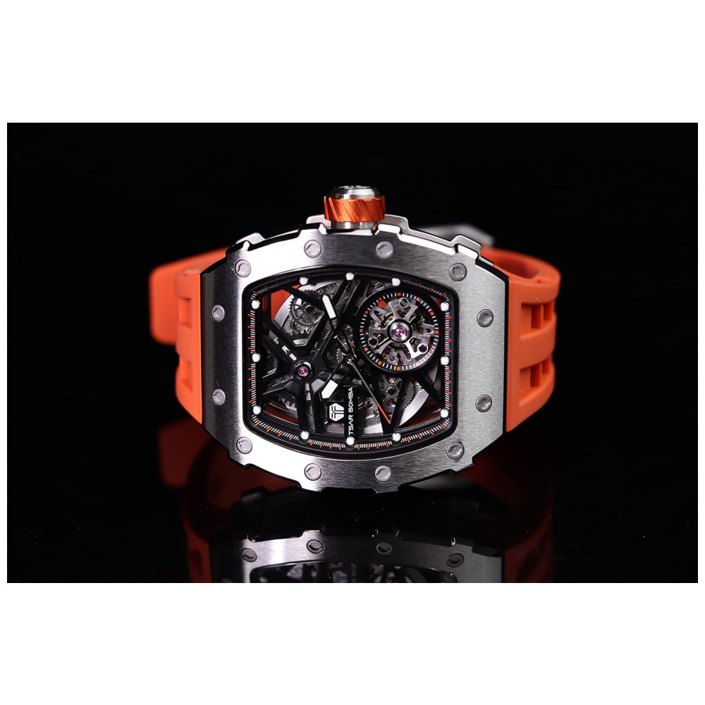Relógio Masculino Analógico Automático a Prova dÁgua 50M com Pulseira de Silicone TSAR BOMBA TB 820679SGLZ Laranja