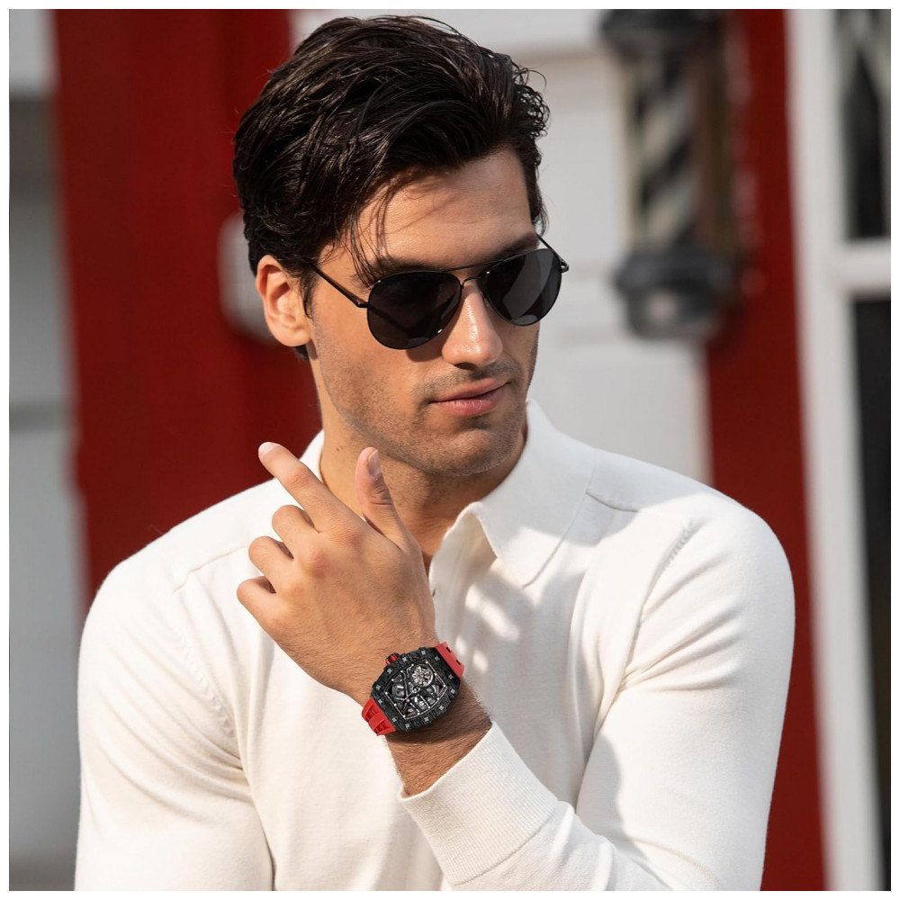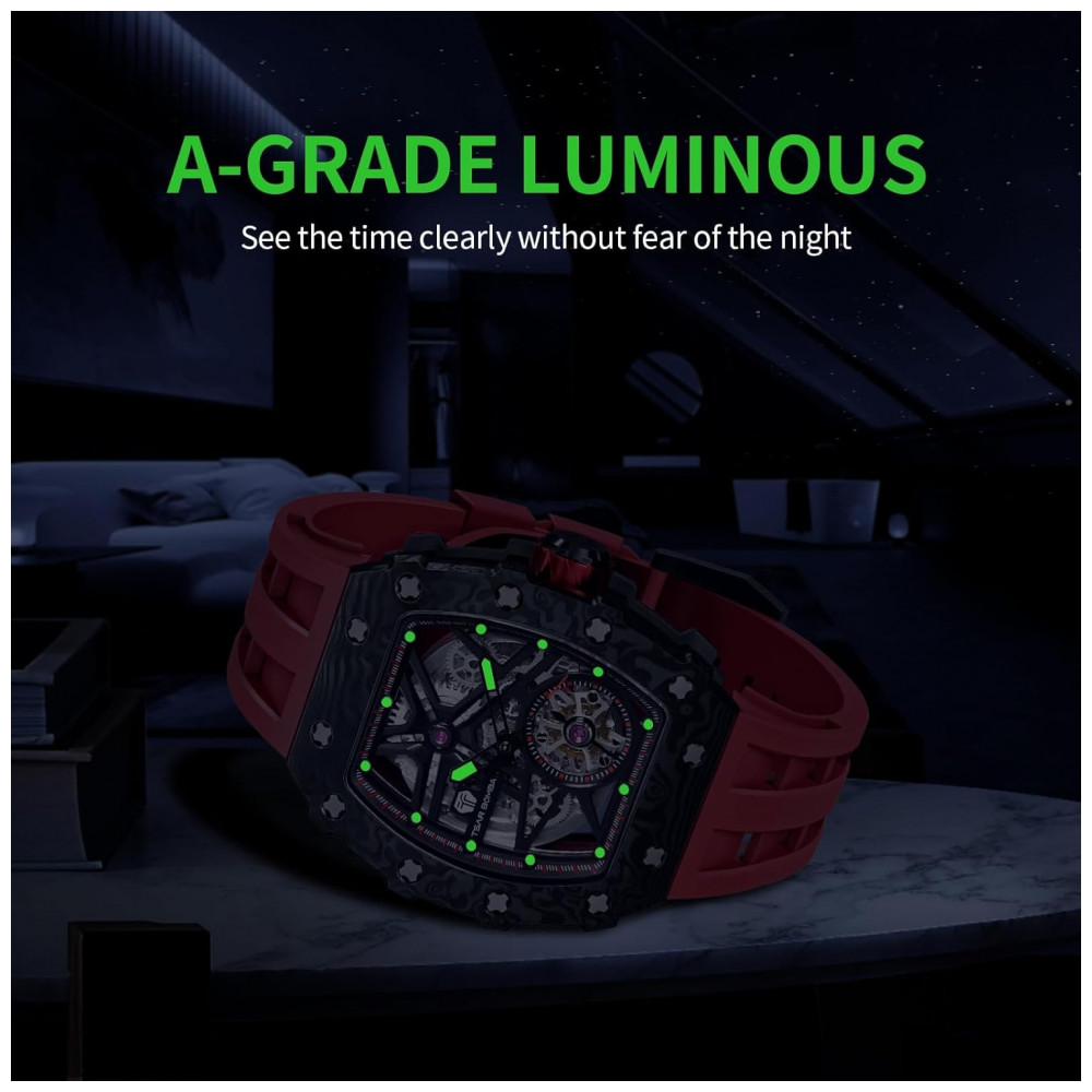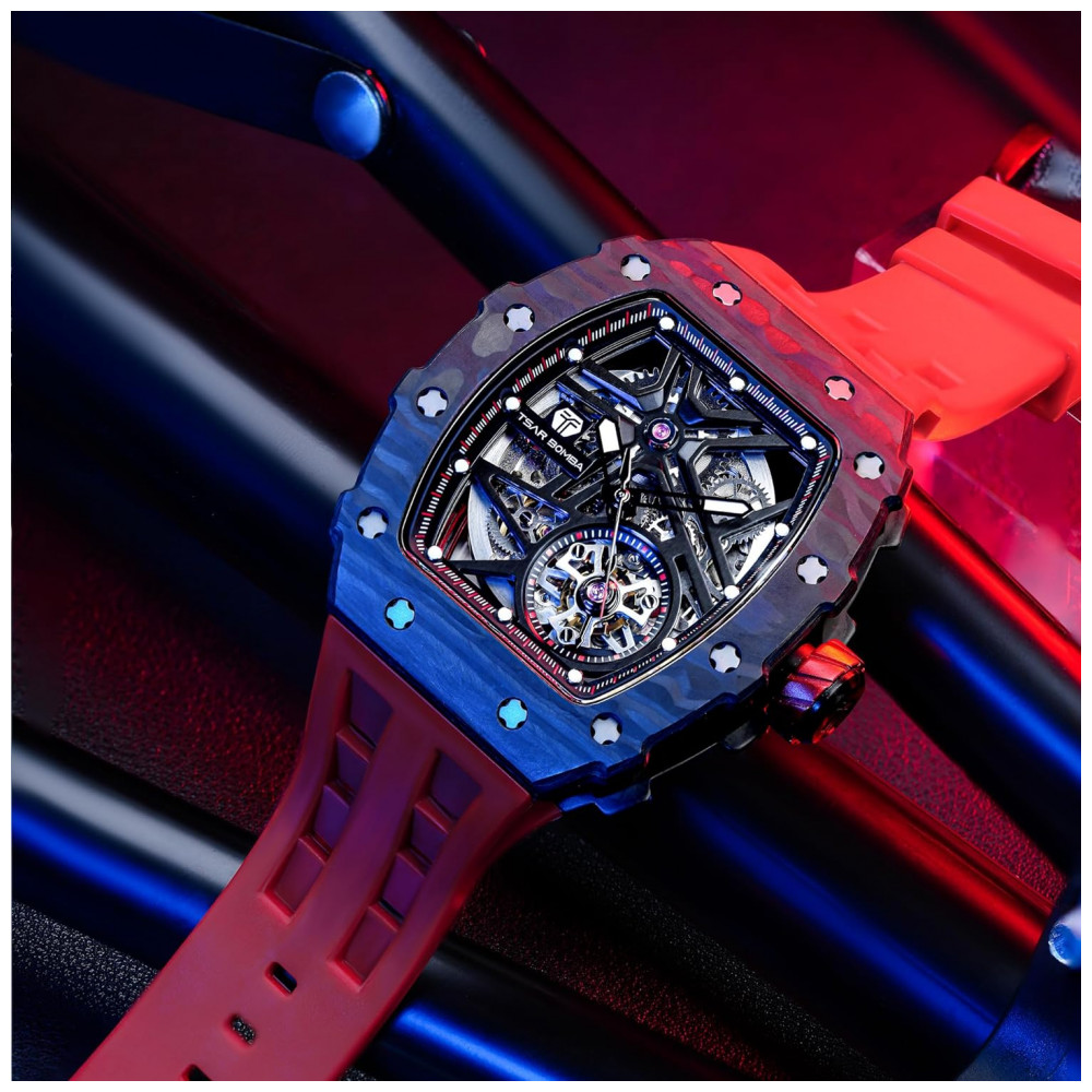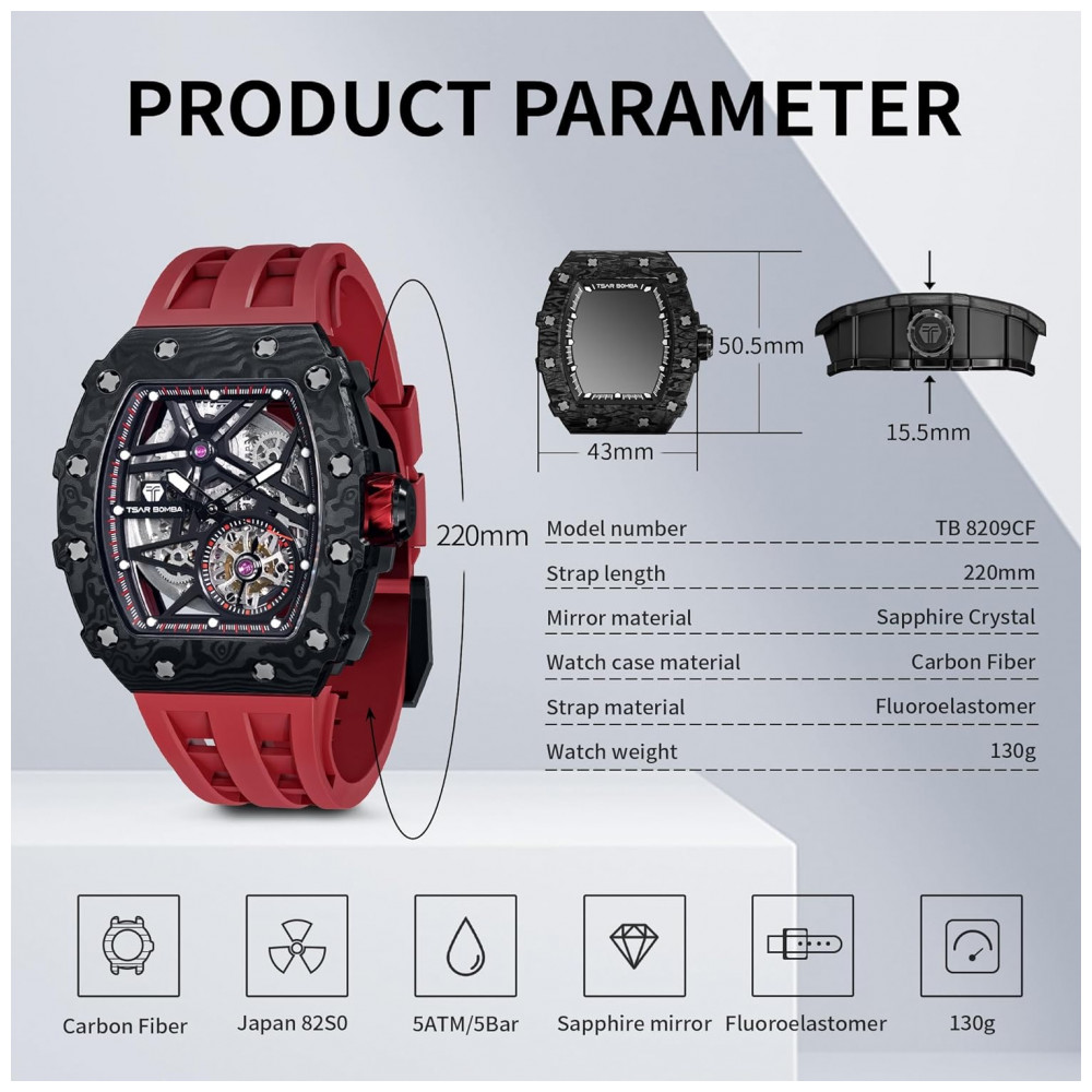TSAR BOMBA 8209 STAR Guardian Atualize a estrutura de material rígido mais leve e aeroespacial da fibra de carbono, que garante a resistência ideal ao choque. Série T 8209, nascida no Laboratório de Força Sino Alemão.Uma cristalização sutil de artesanato relojoeiro e materiais de alta tecnologia. Prêmio internacional de design em forma de barril, ajuste ergonômico. Com design oco de alta transparência e dupla face, permitindo que você tenha um senso de visão mecânico transparente e de alta definição, todos os designs requintados em resumo.