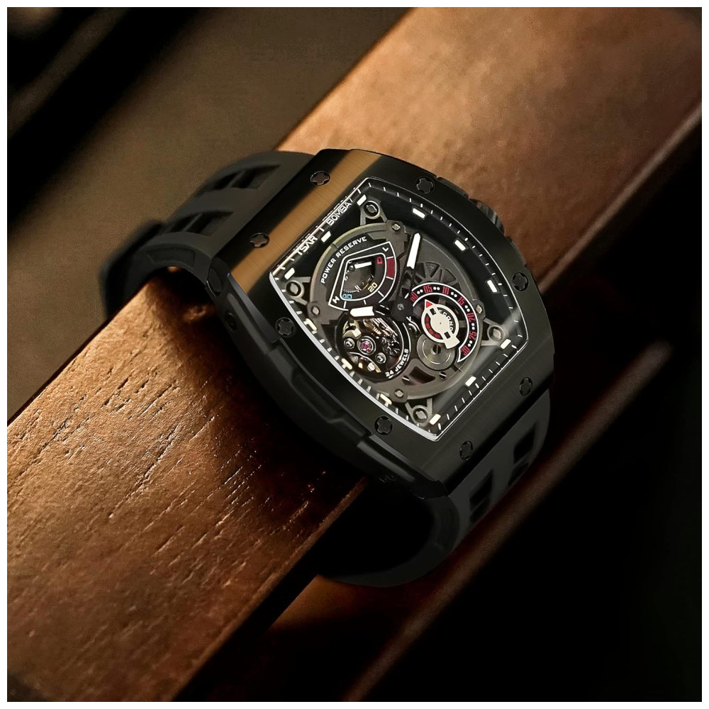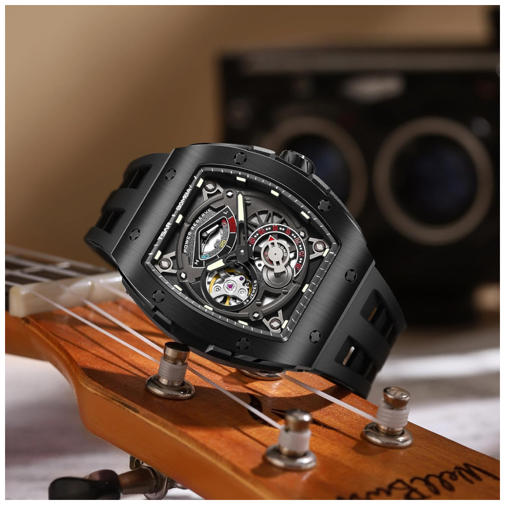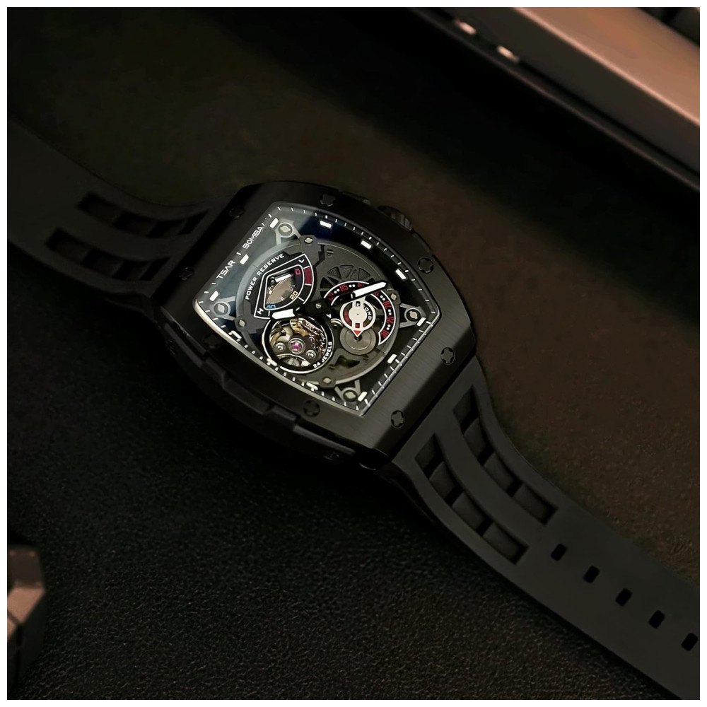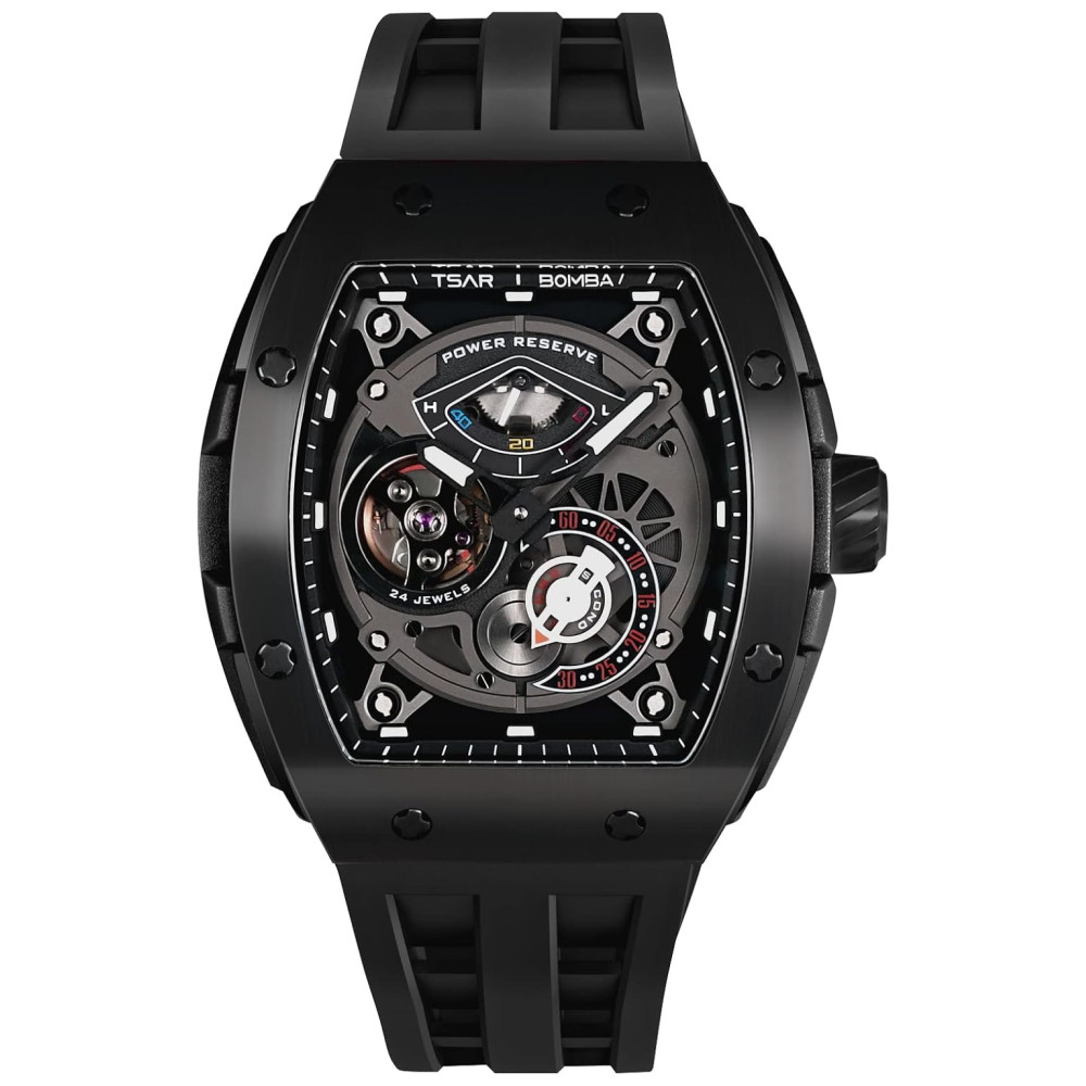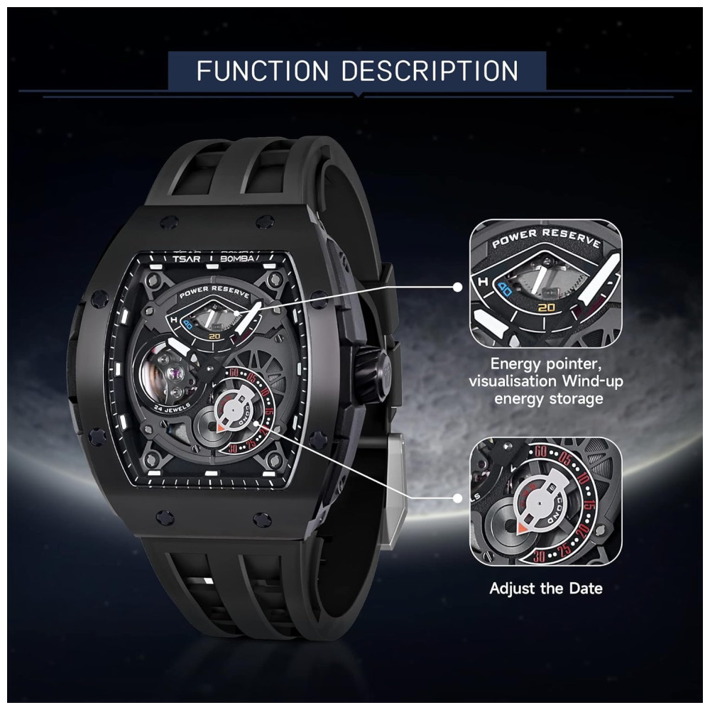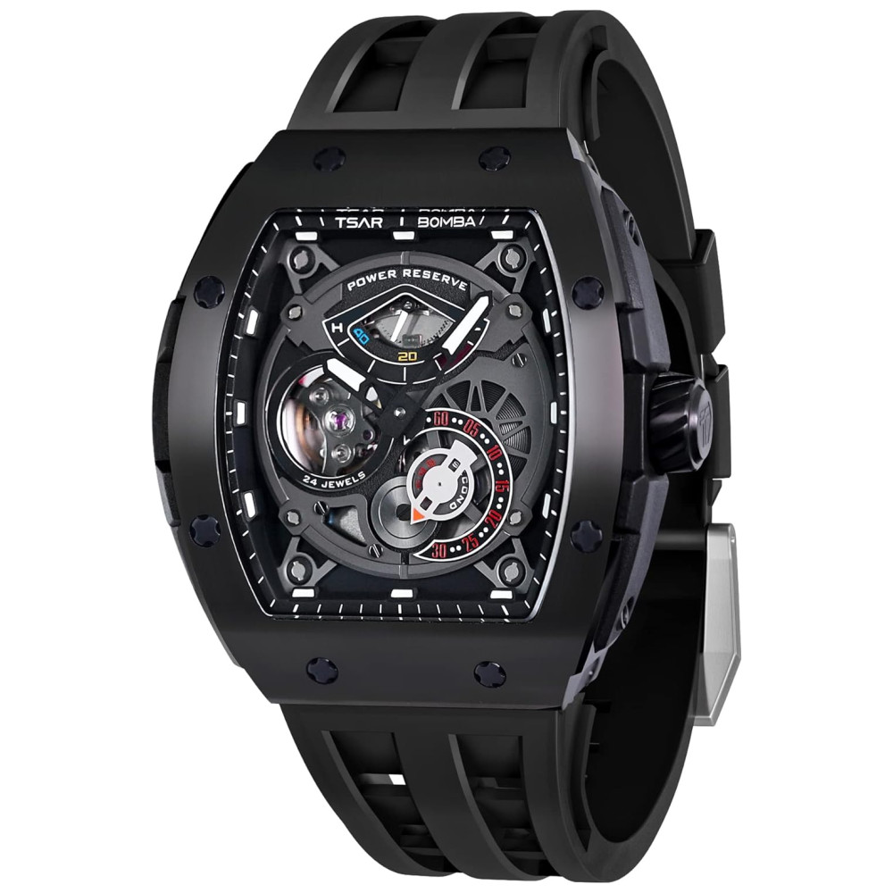 Relógio Masculino Analógico Automático a Prova dÁgua 50M com Pulseira de Silicone TSAR BOMBA TB8210 SGLZ Preto