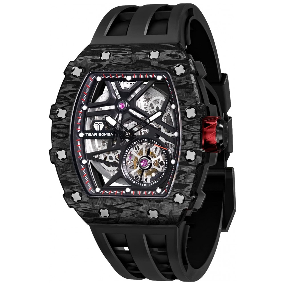 Relógio Masculino Analógico Automático a Prova dÁgua 50M com Pulseira de Silicone TSAR BOMBA TBCF 8209 Preto