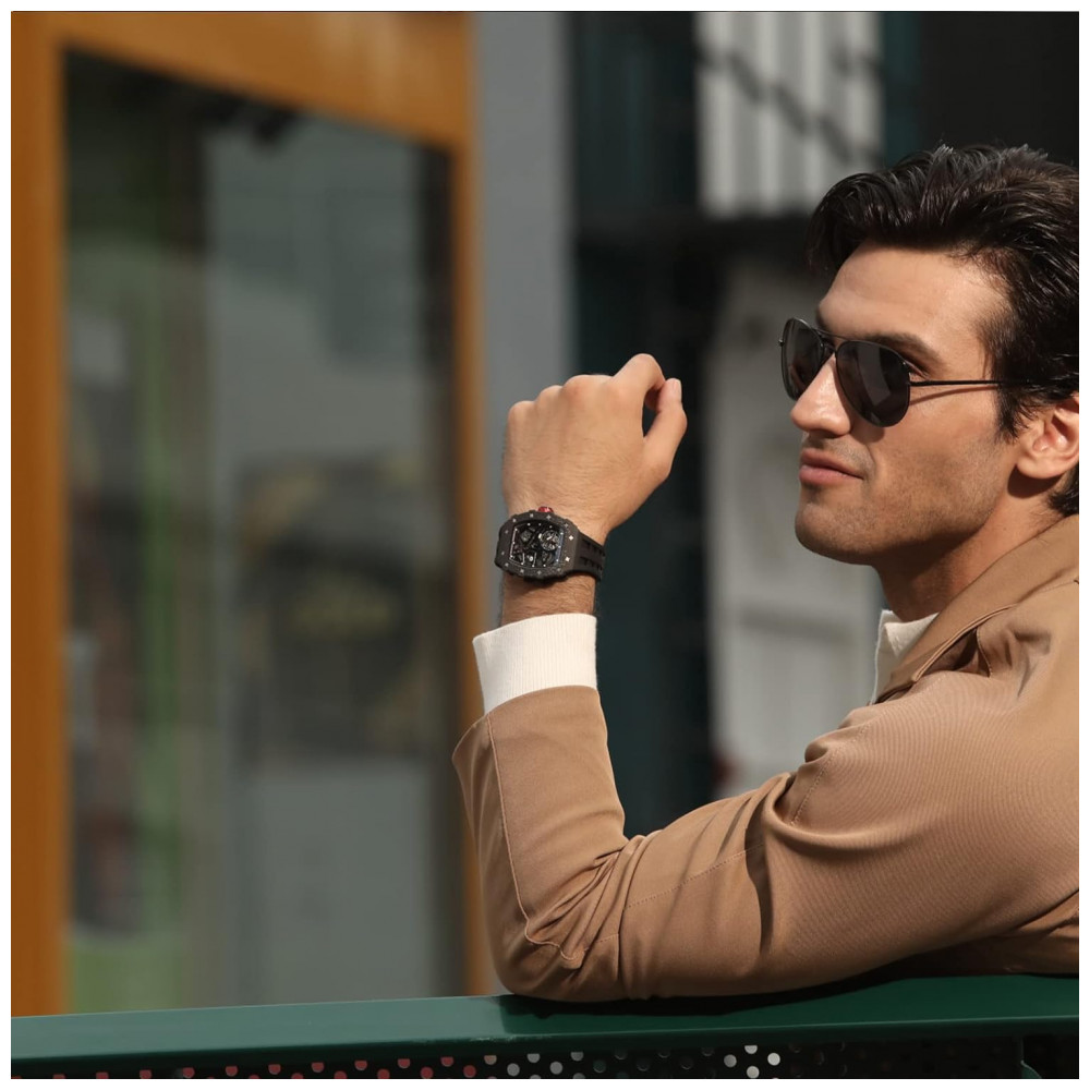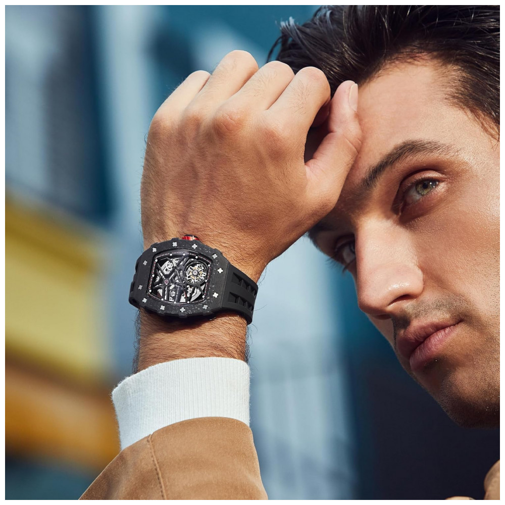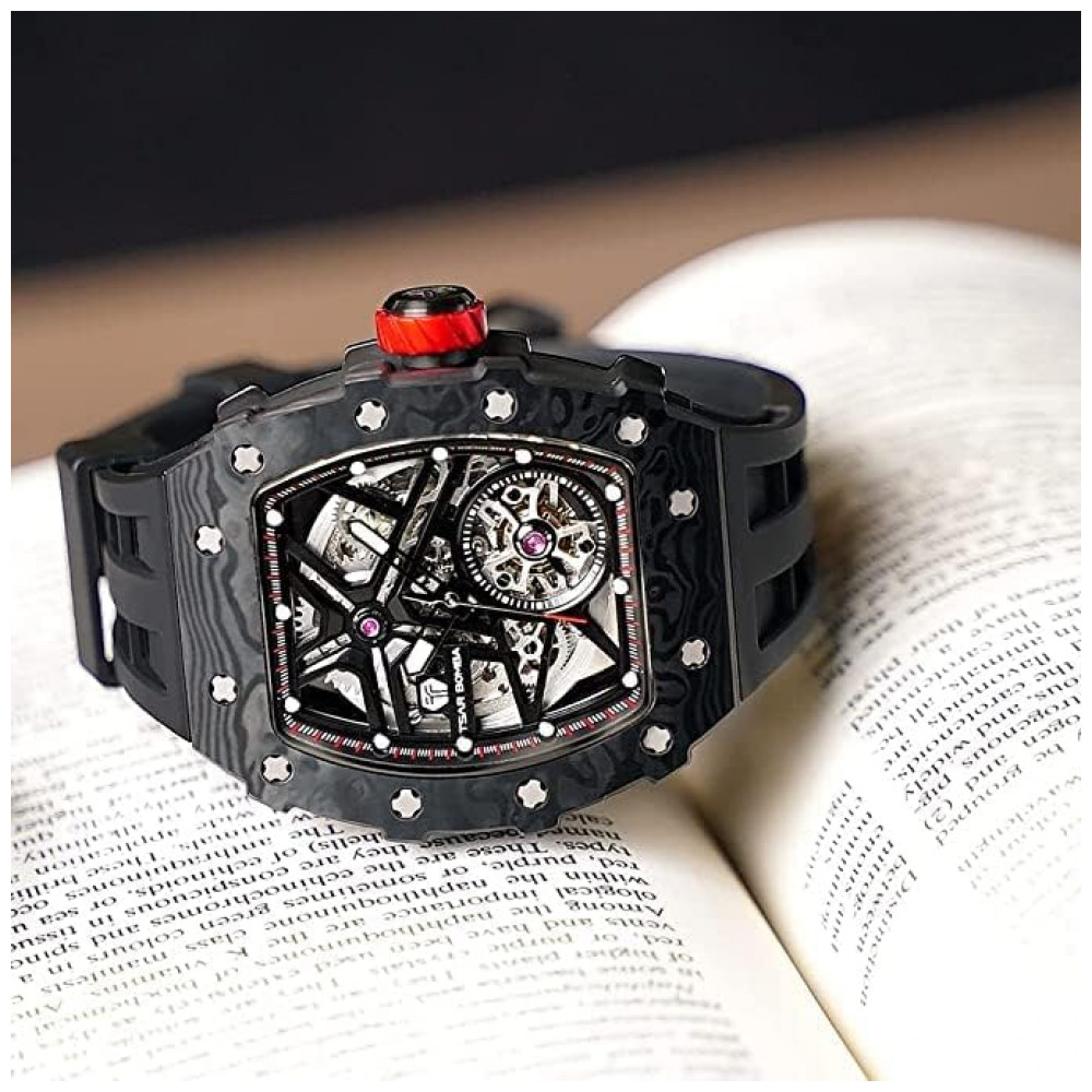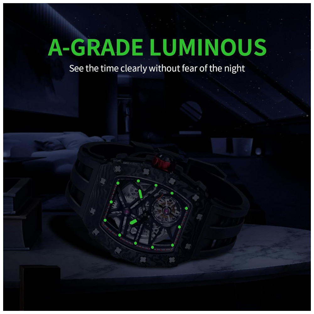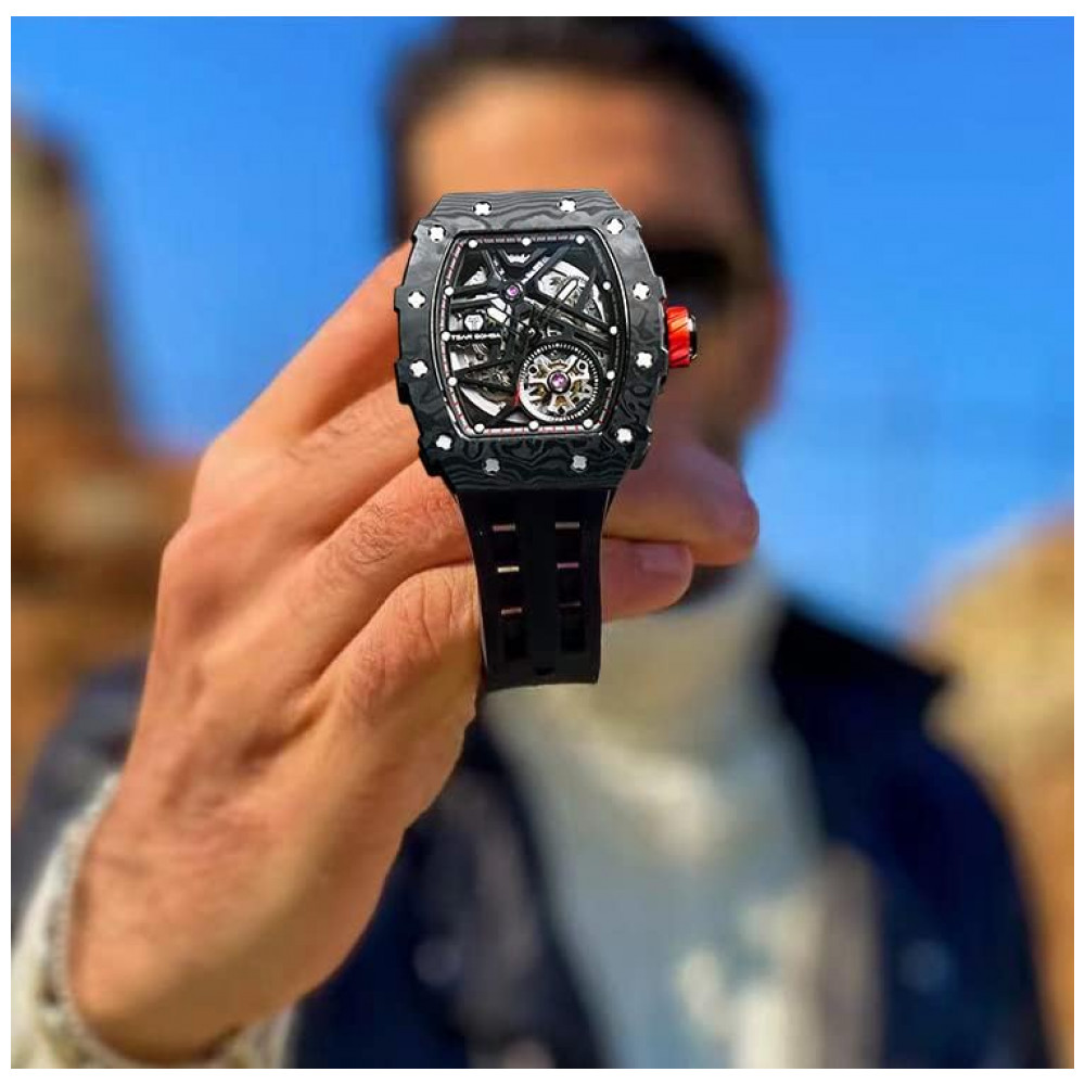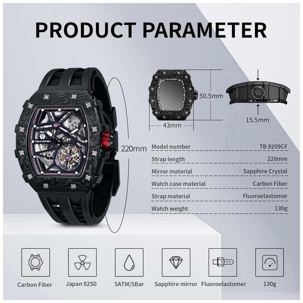 Atualize a estrutura de material rígido de grau aeroespacial mais leve de fibra de carbono que garante resistência ideal a choques. T Series 8209 nascido no Sino German Force Lab.A cristalização sutil de artesanato relojoeiro e materiais de alta tecnologia.Prêmio internacional para design em forma de barril, ajuste ergonômico. Com design oco de alta transparência de dupla face, permitindo que você tenha uma visão mecânica de alta definição e transparente, todos os designs requintados de relance.