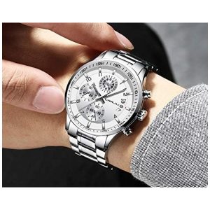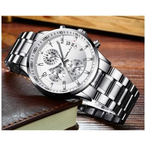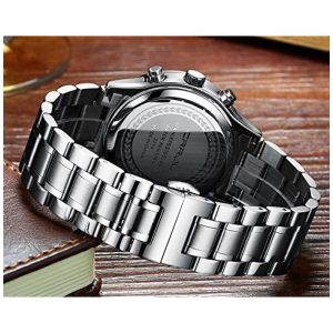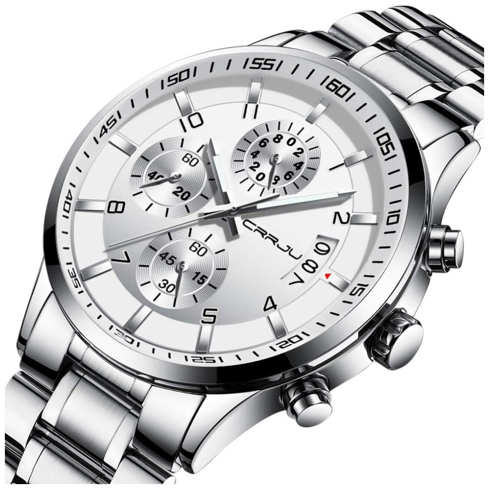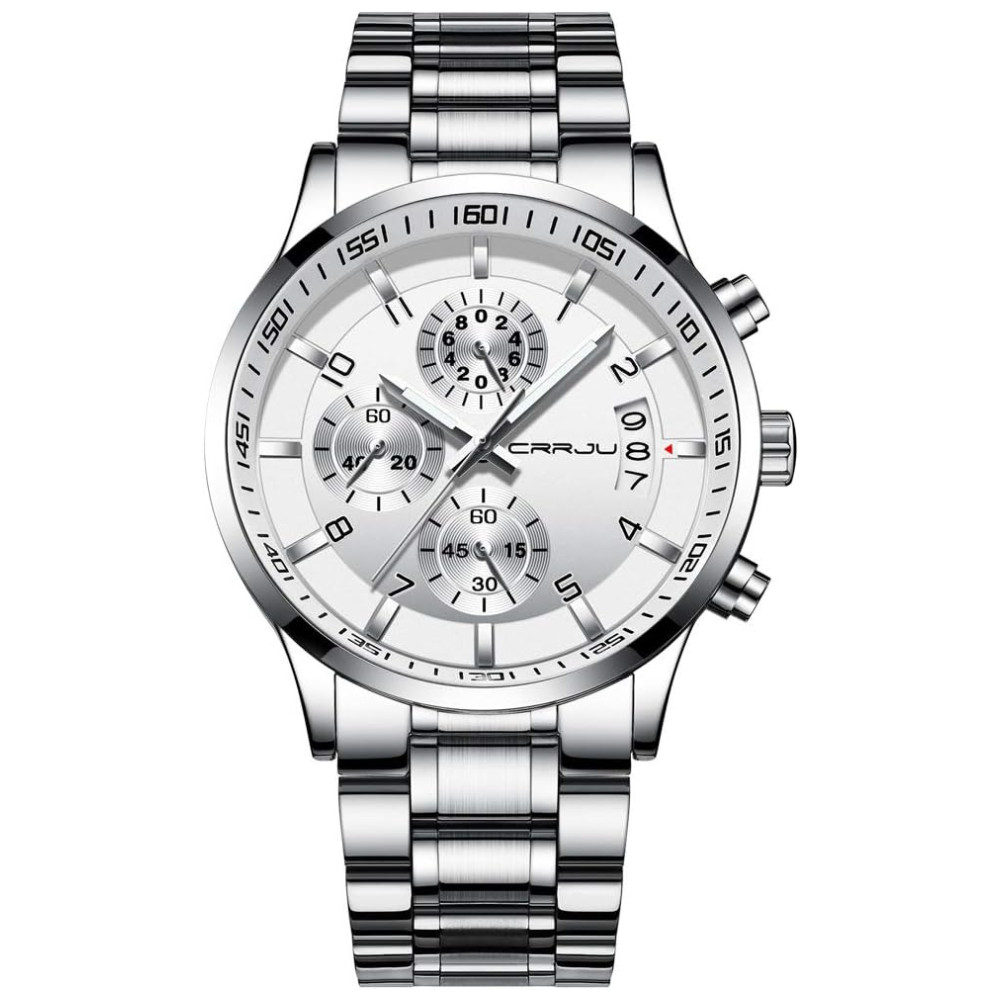 DESIGN ELEGANTE ÚNICO Ponteiro de prata cronógrafos de segundos, minutos e horas calendário clássico