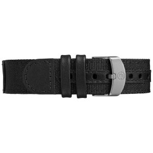 Couro preto ajustável de 20 milímetros e pulseira de tecido se encaixa em circunferência de pulso de até .