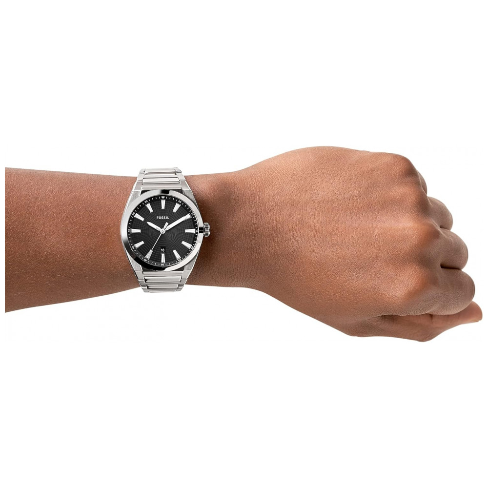 Caixa de aço inoxidável com mostrador preto texturizado pulseira de aço inoxidável os links podem ser removidos para um ajuste personalizado.