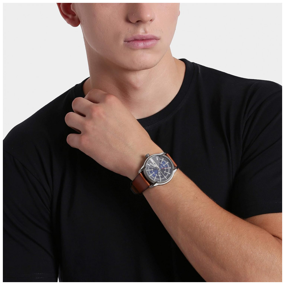 Relógio Masculino Analógico de Quartzo com Pulseira de Couro Diesel DZ1784 Azul Escuro e Marrom