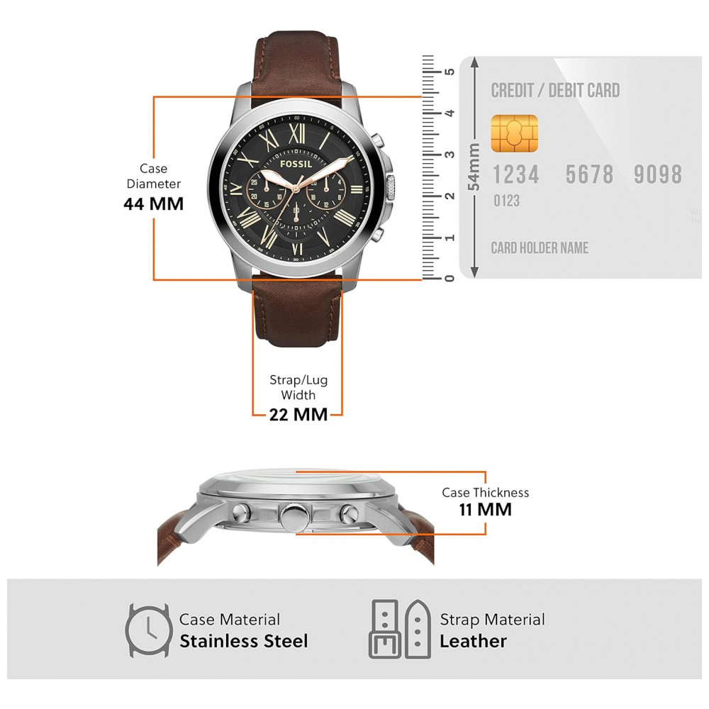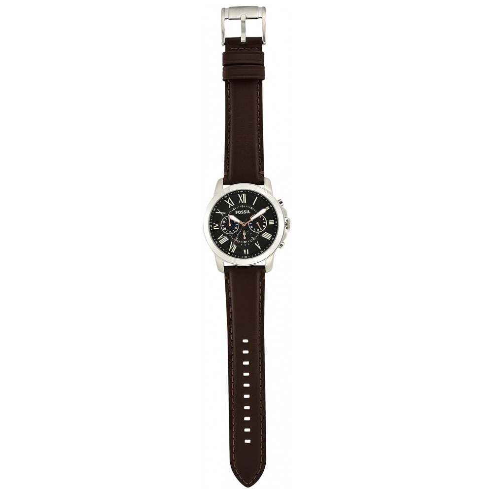 Caixa de aço inoxidável com mostrador preto sunray pulseira de couro marrom escuro com fecho de fivela ajustável intercambiável com todas as pulseiras Fossil de .