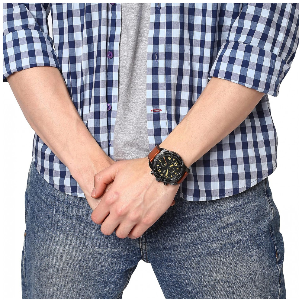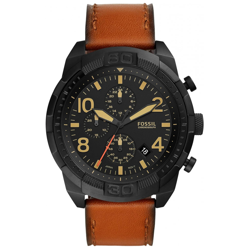Relógio Masculino Analógico de Quartzo com Pulseira de Couro Fossil FS5714 Marrom e Preto
