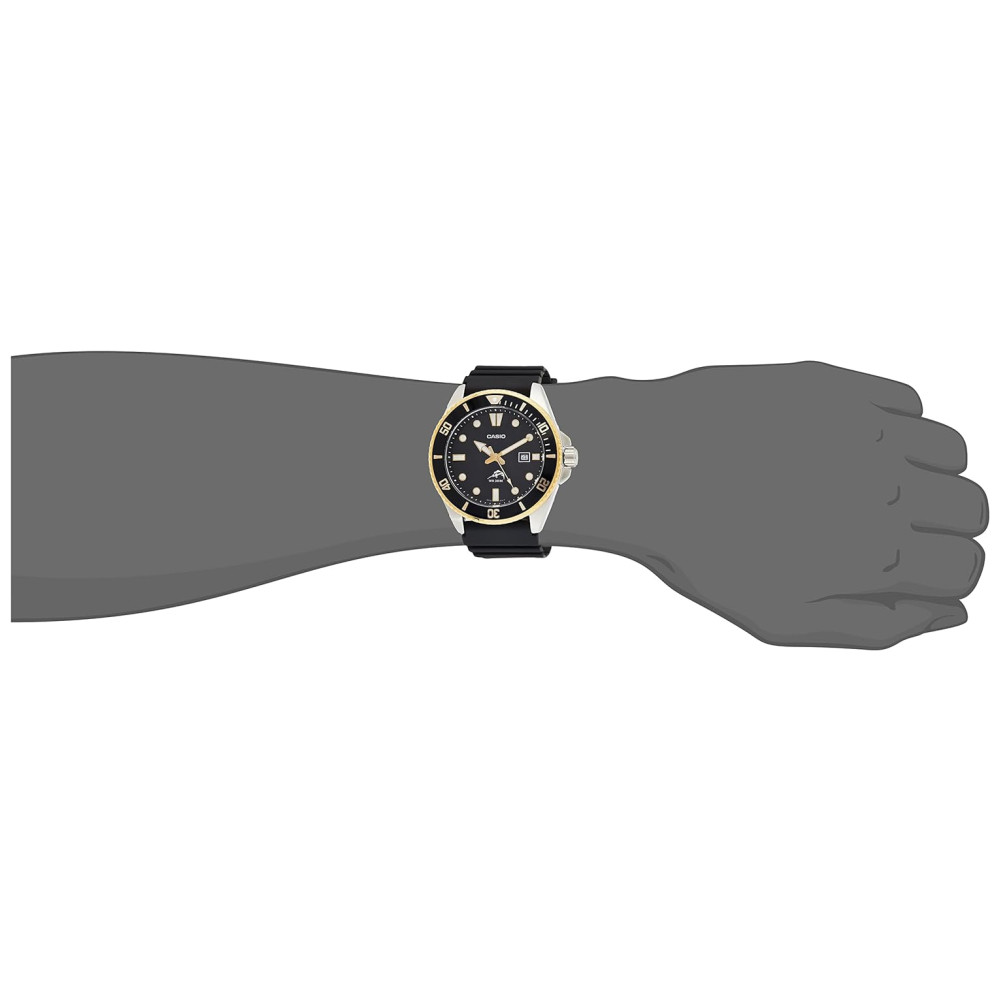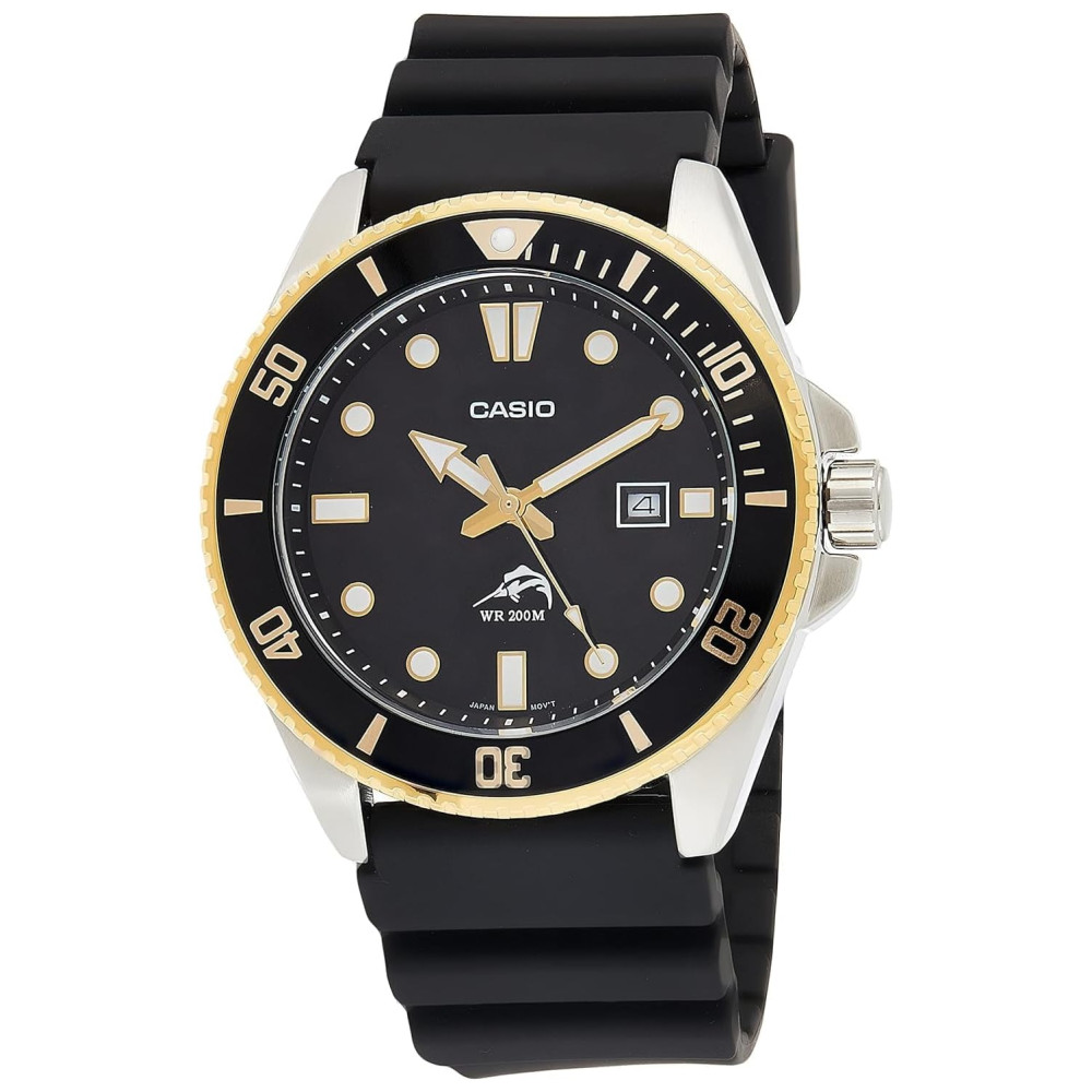 Relógio Masculino Analógico Diver de Quartzo em Aço Inoxidável Pulseira de Resina CASIO MDV106G 1AV Preto