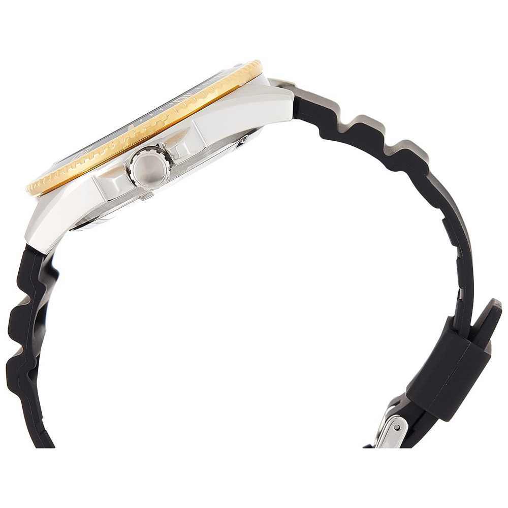 Inspirado no mar, esta pulseira de resina preta e caixa de aço inoxidável com mostrador preto e moldura dourada conferem lhe um visual clássico.