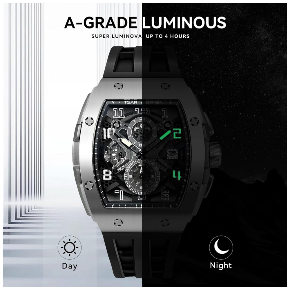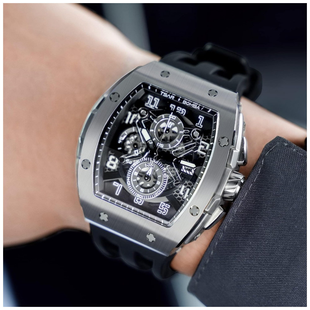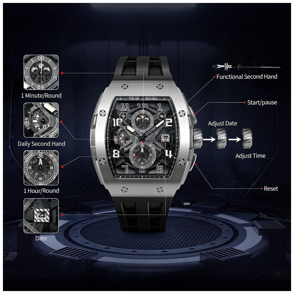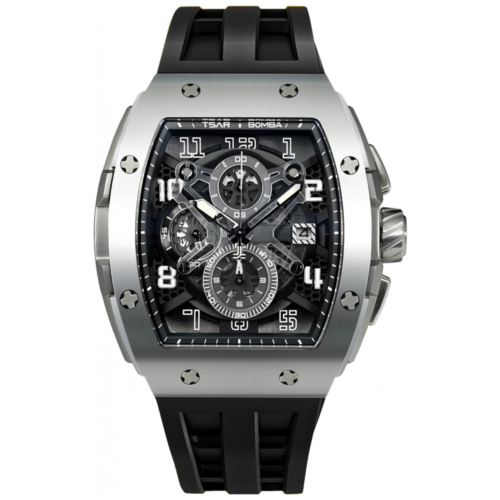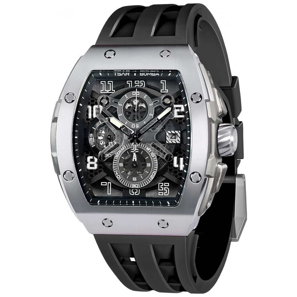 Relógio Masculino Analógico Quartzo a Prova dÁgua 50M com Cronógrafo TSAR BOMBA 8211 Preto e Prata