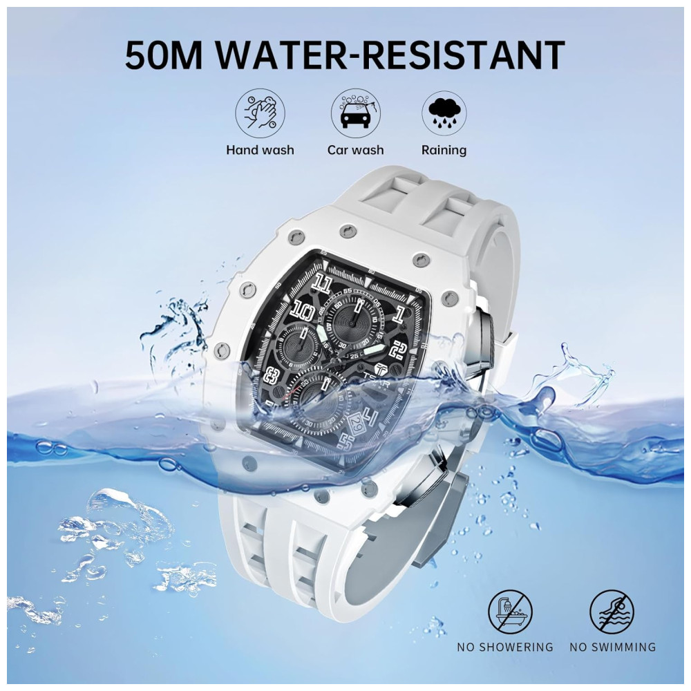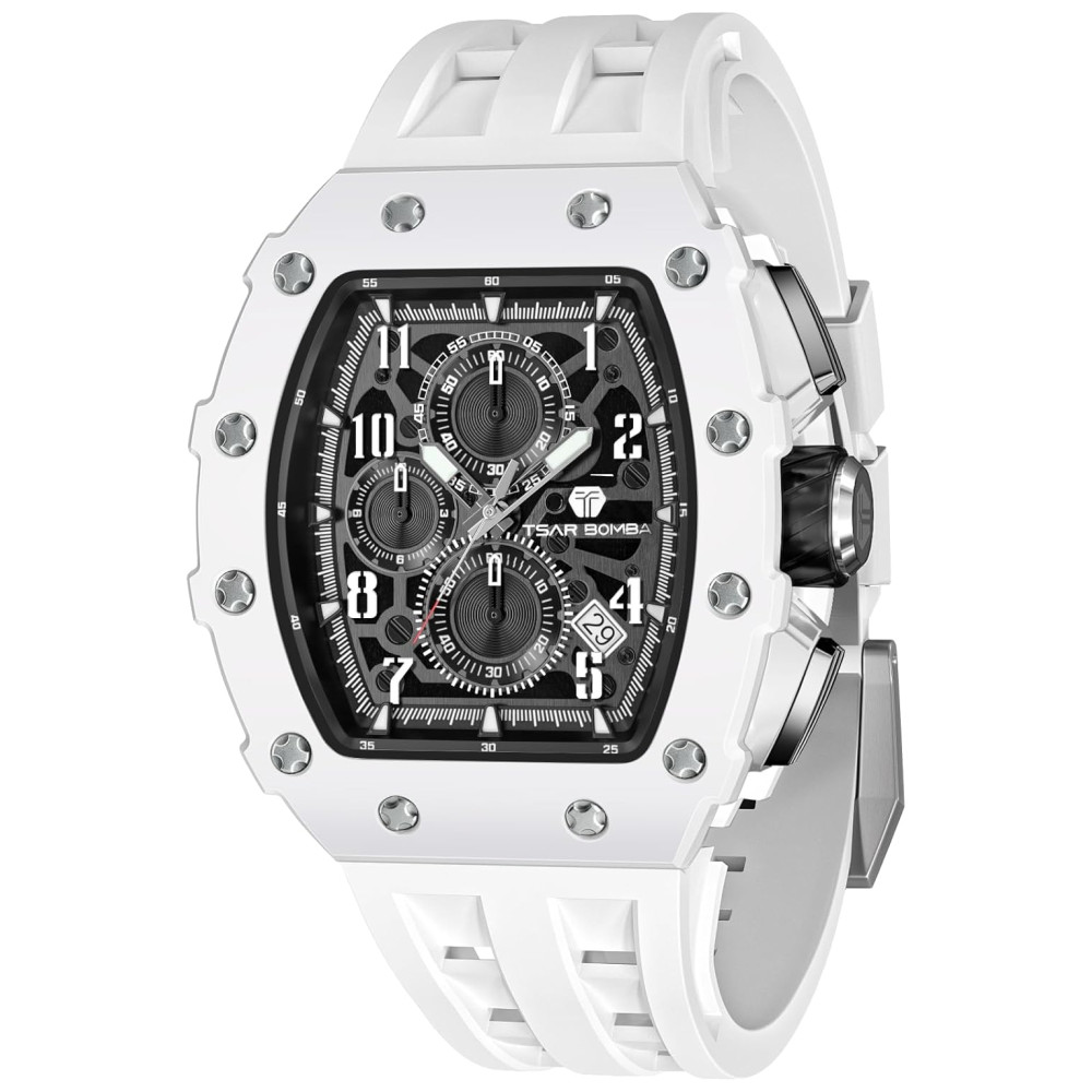 Relógio Masculino Analógico Quartzo a Prova dÁgua 50M com Cronógrafo TSAR BOMBA TB 8204SGLZHX Branco