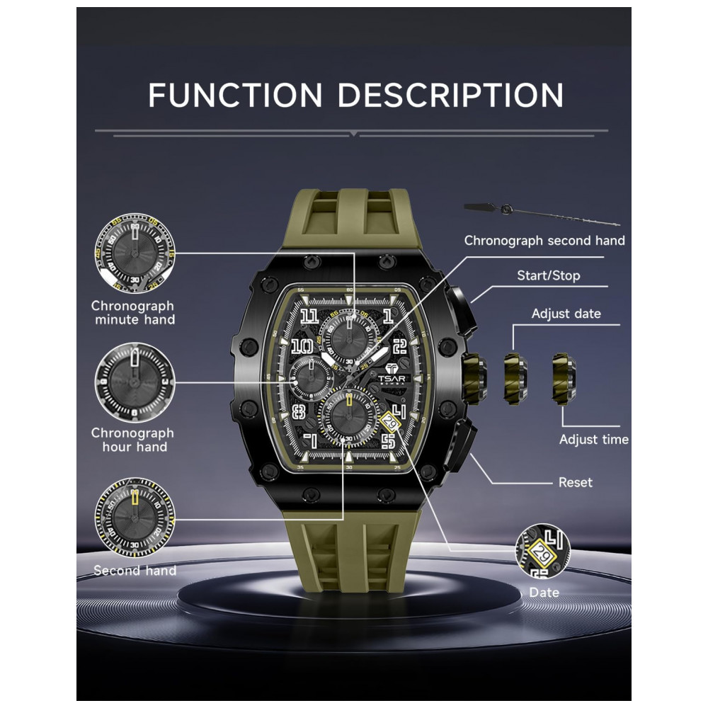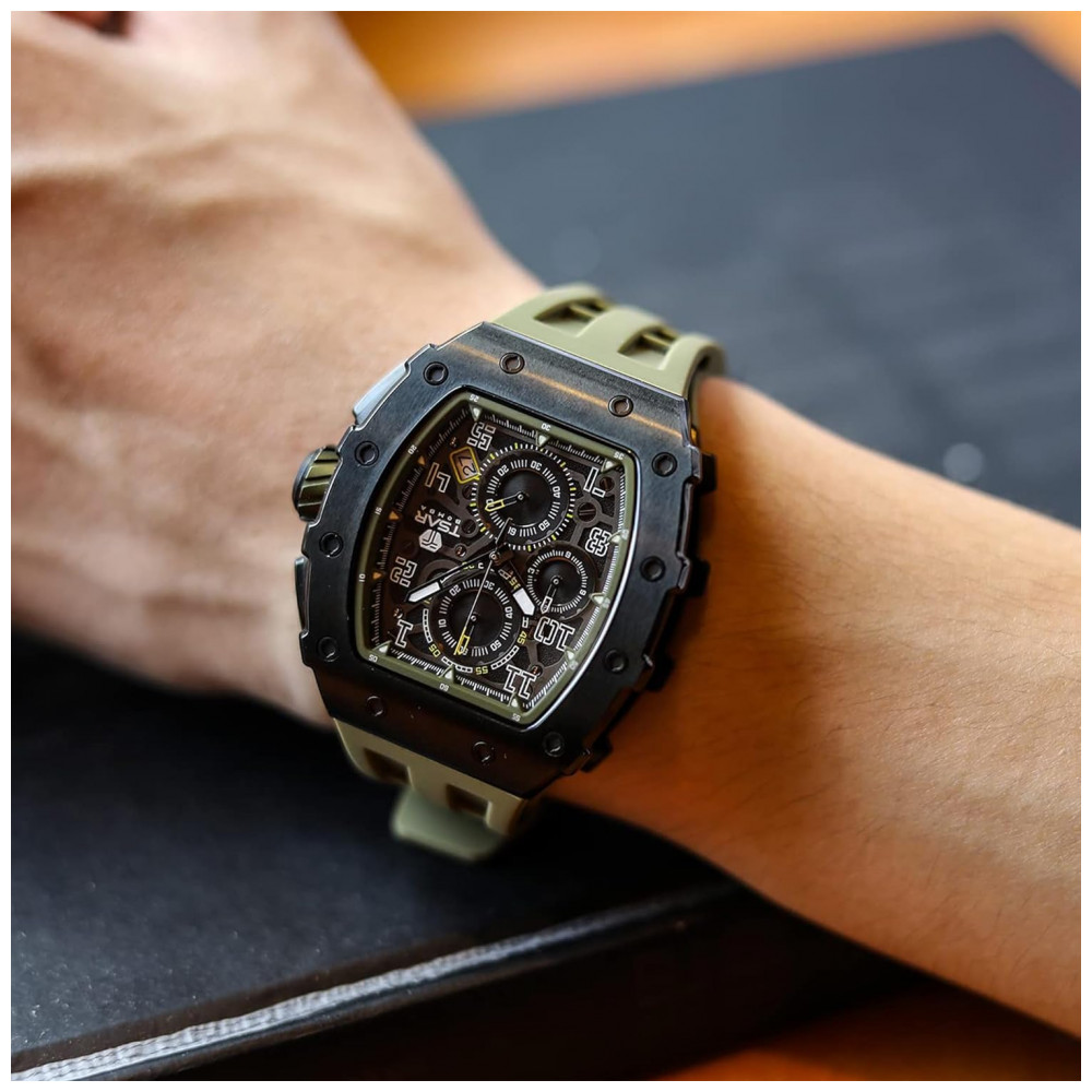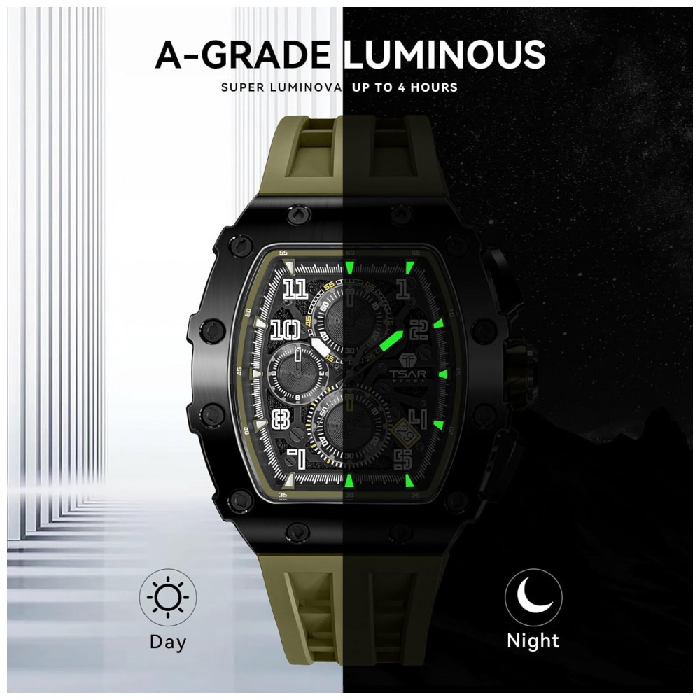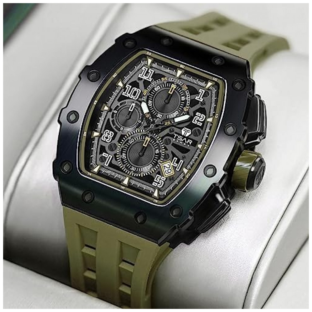 Relógio Masculino Analógico Quartzo a Prova dÁgua 50M com Cronógrafo TSAR BOMBA TB 8204SGLZHX Verde