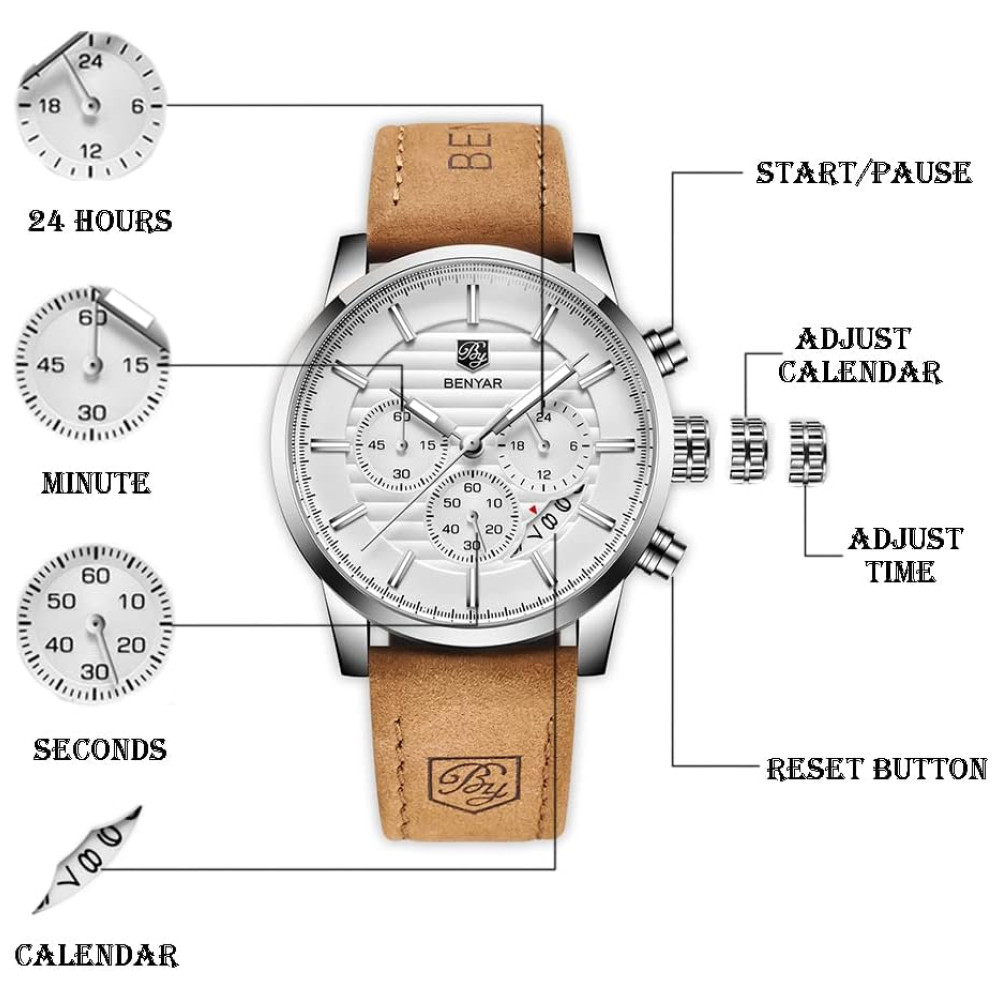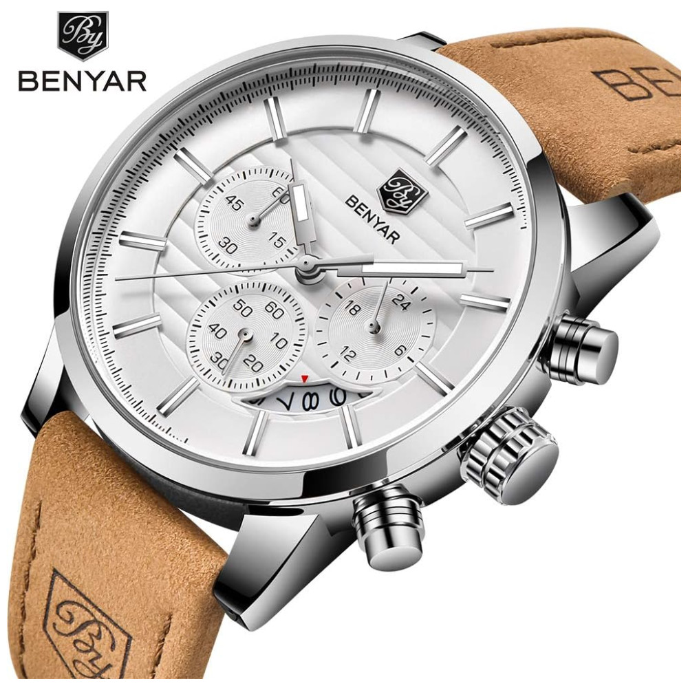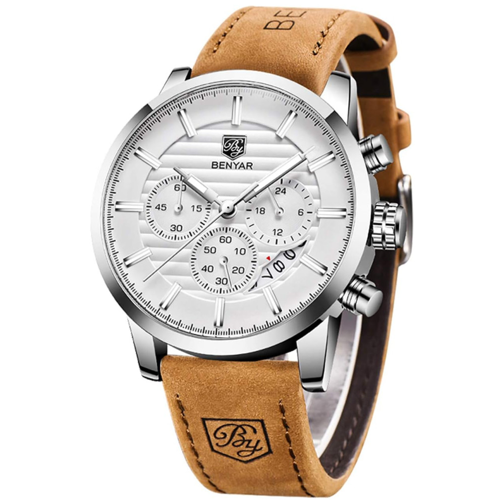 Relógio Masculino Analógico Quartzo Couro BY BENYAR B071LJ9YW7 Marrom