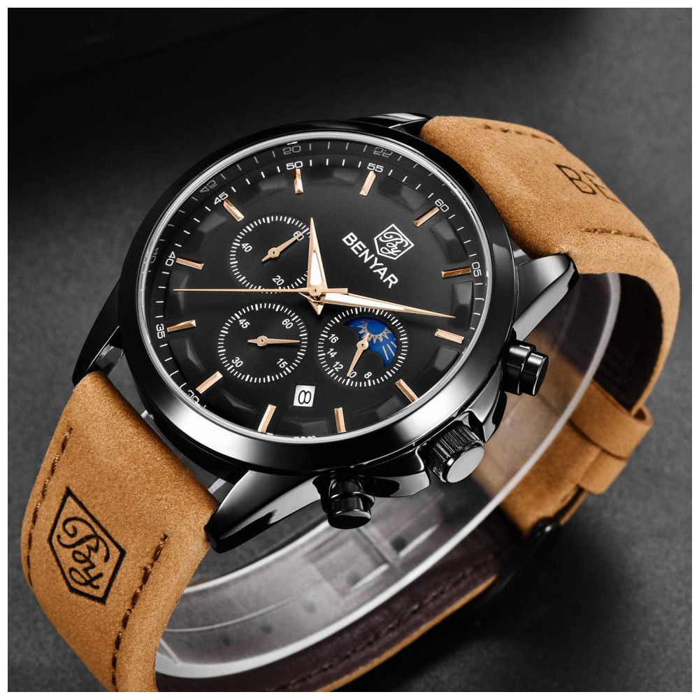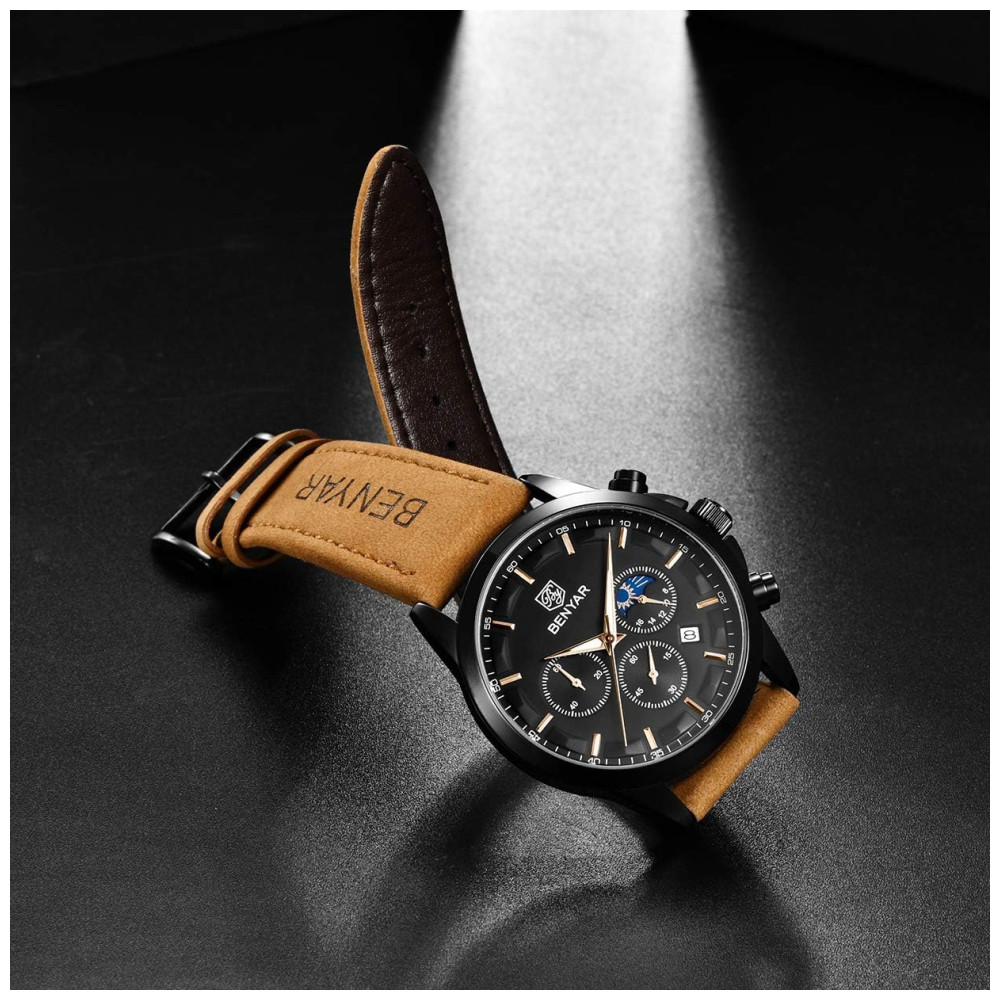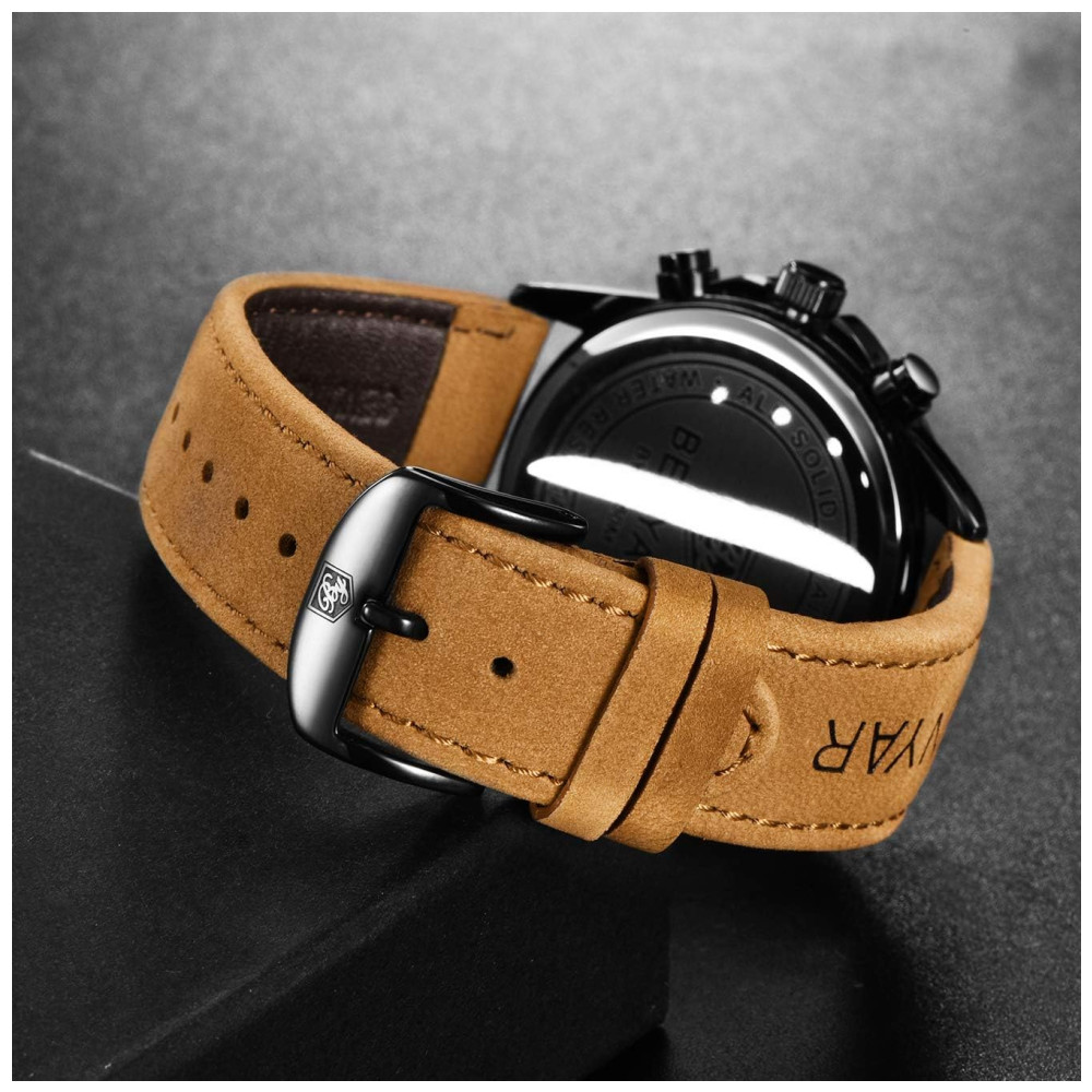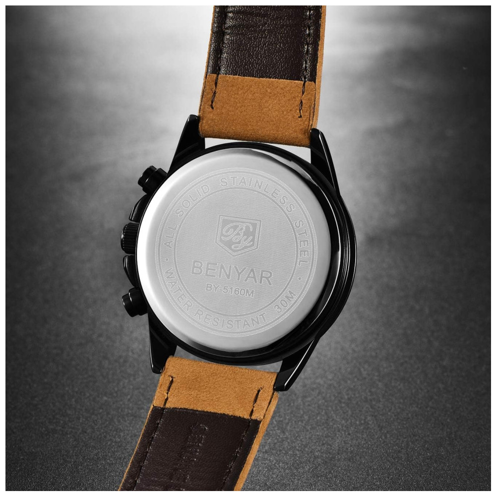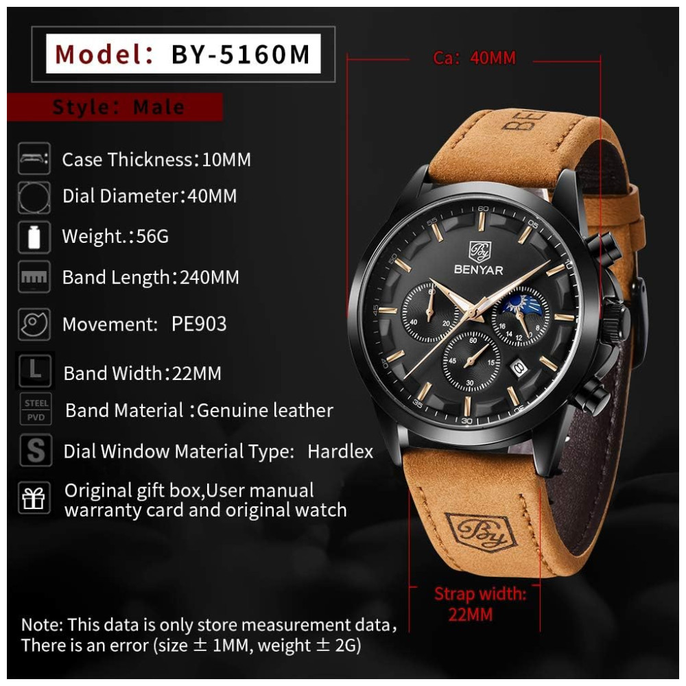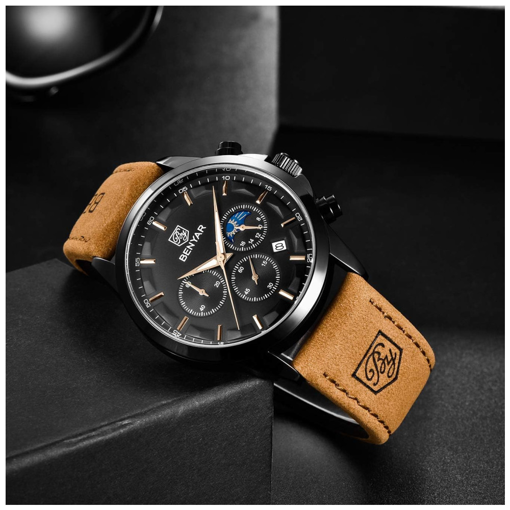 CONFORTO E DURABILIDADE Quando você precisa de um relógio para provar que valoriza seu tempo, os relógios BENYAR são a resposta. Nosso relógio com pulseira de couro não só é confortável para o seu pulso, mas também fácil de combinar com suas roupas. Nossos relógios de pulso analógicos são perfeitos para o aventureiro ou o homem comum que procura um traje que combine com estilo. Nossa paixão nos leva à perfeição. Colocamos horas e horas de trabalho para obter um produto final verdadeiramente incrível e único.