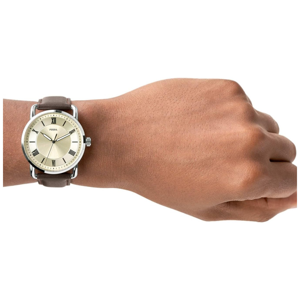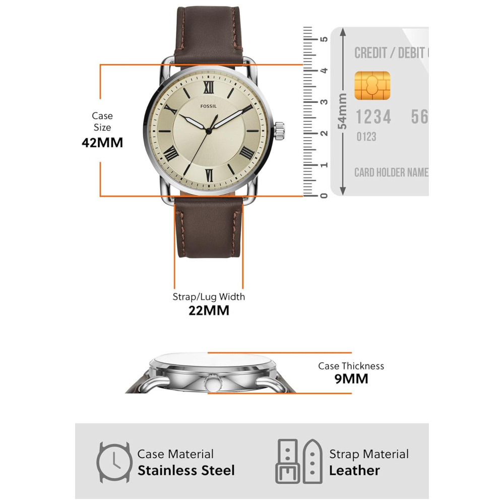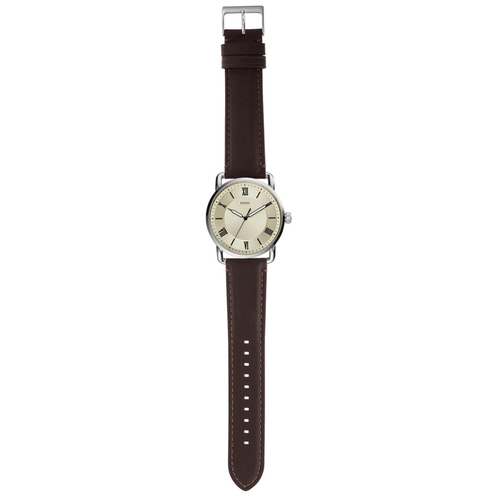 Caixa de aço inoxidável com mostrador creme sunray pulseira de couro marrom com fecho de fivela intercambiável com todas as bandas fósseis de