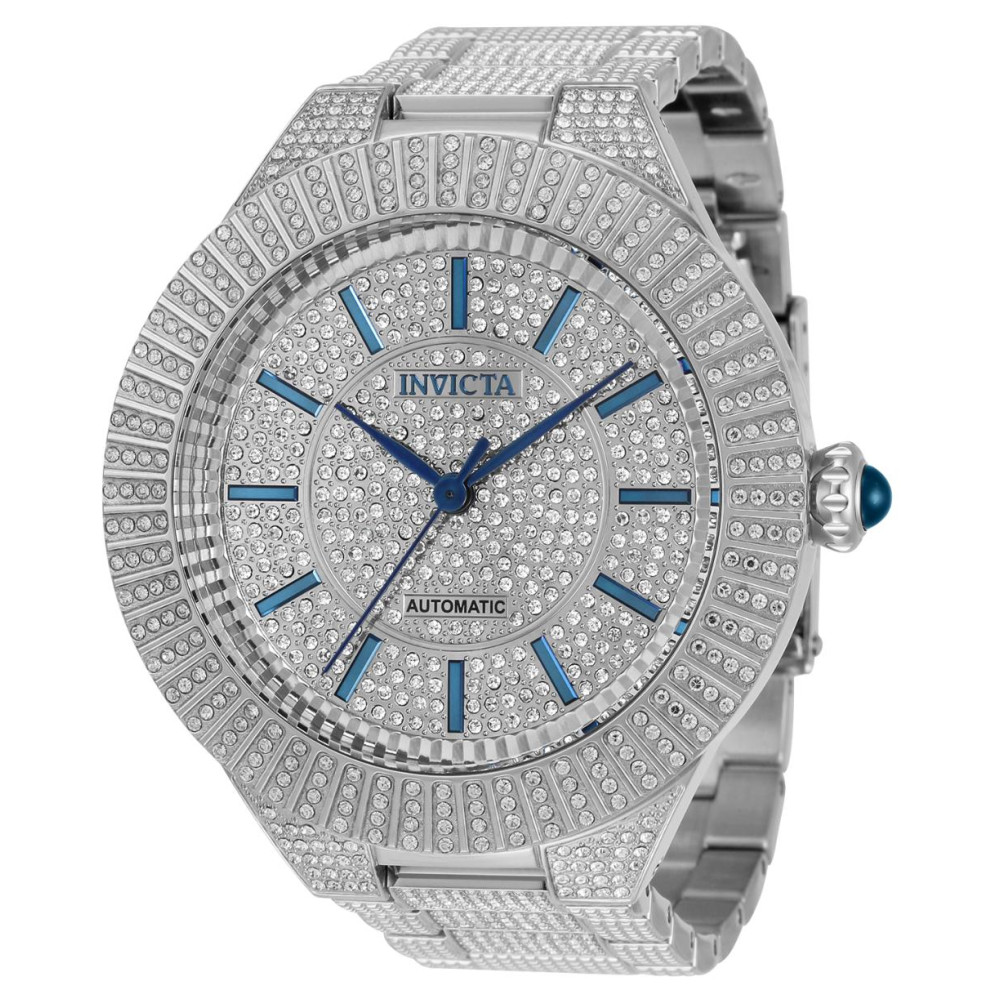 Este incrível relógio Invicta da coleção Specialty oferece um movimento automático e uma sofisticada caixa de aço. A face exibe um mostrador de metal pavimentado protegido por nosso Flame Fusion Crystal. O design é completado por uma banda de aço inoxidável prateado. Este relógio pode resistir à água por até 100m.