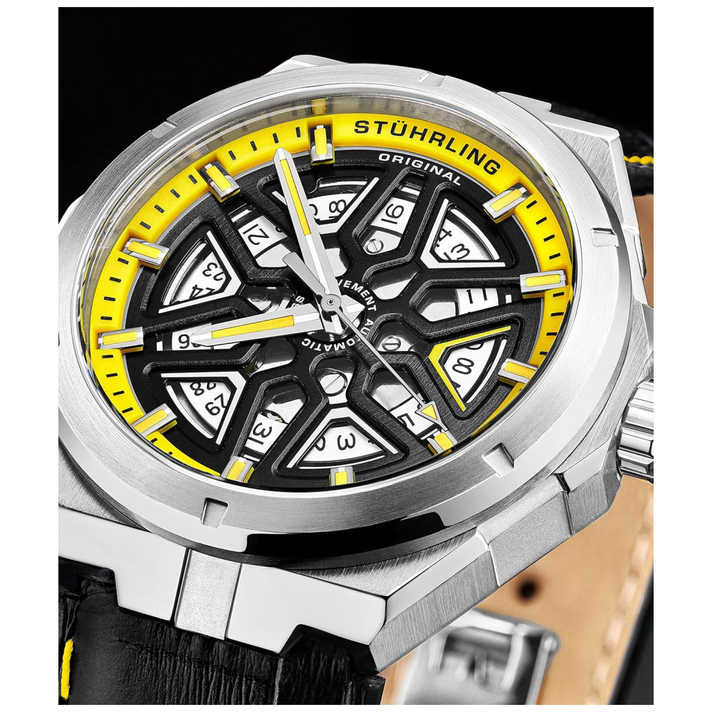 Relógio Masculino Automático de pulseira de Couro STUHRLING 379.03 Preto