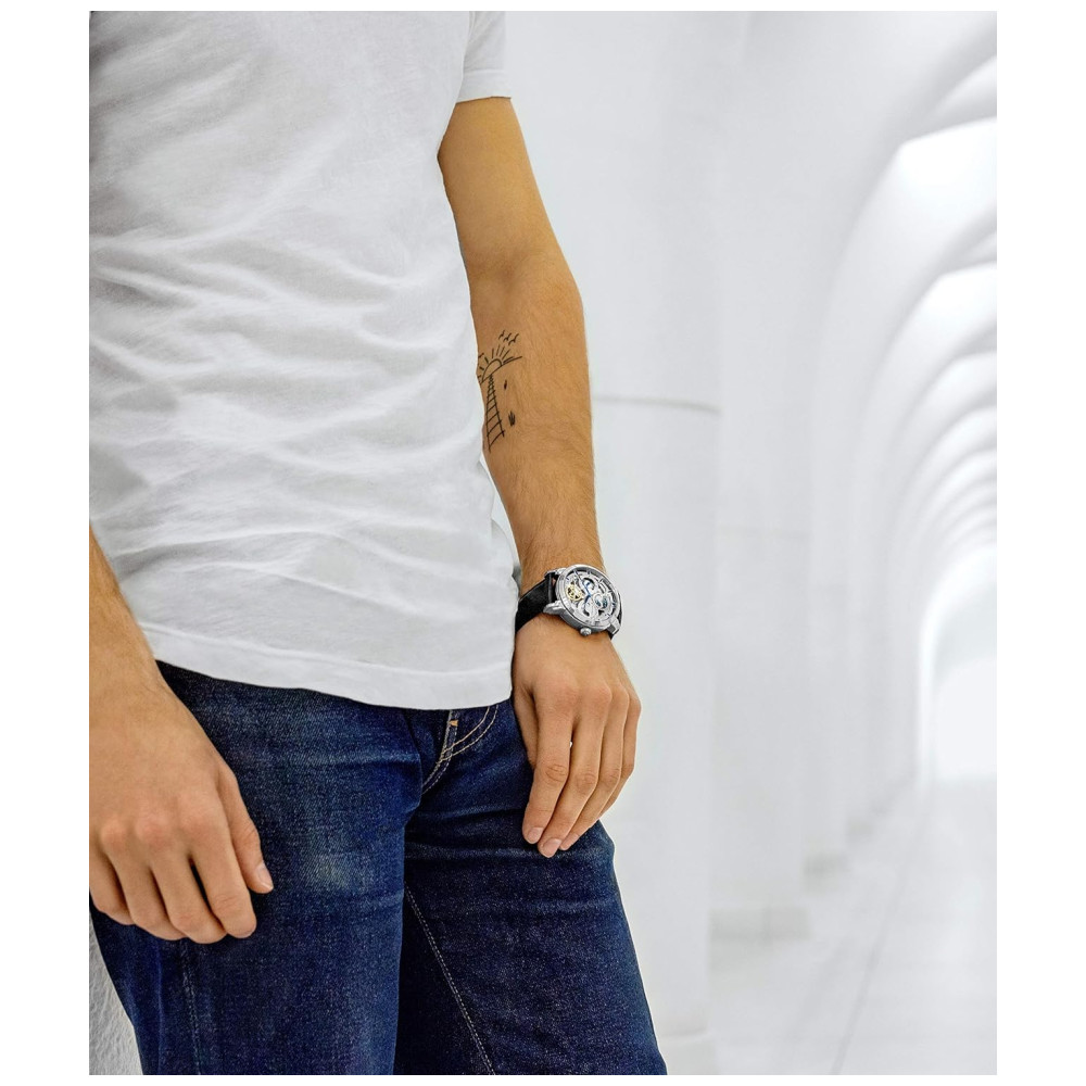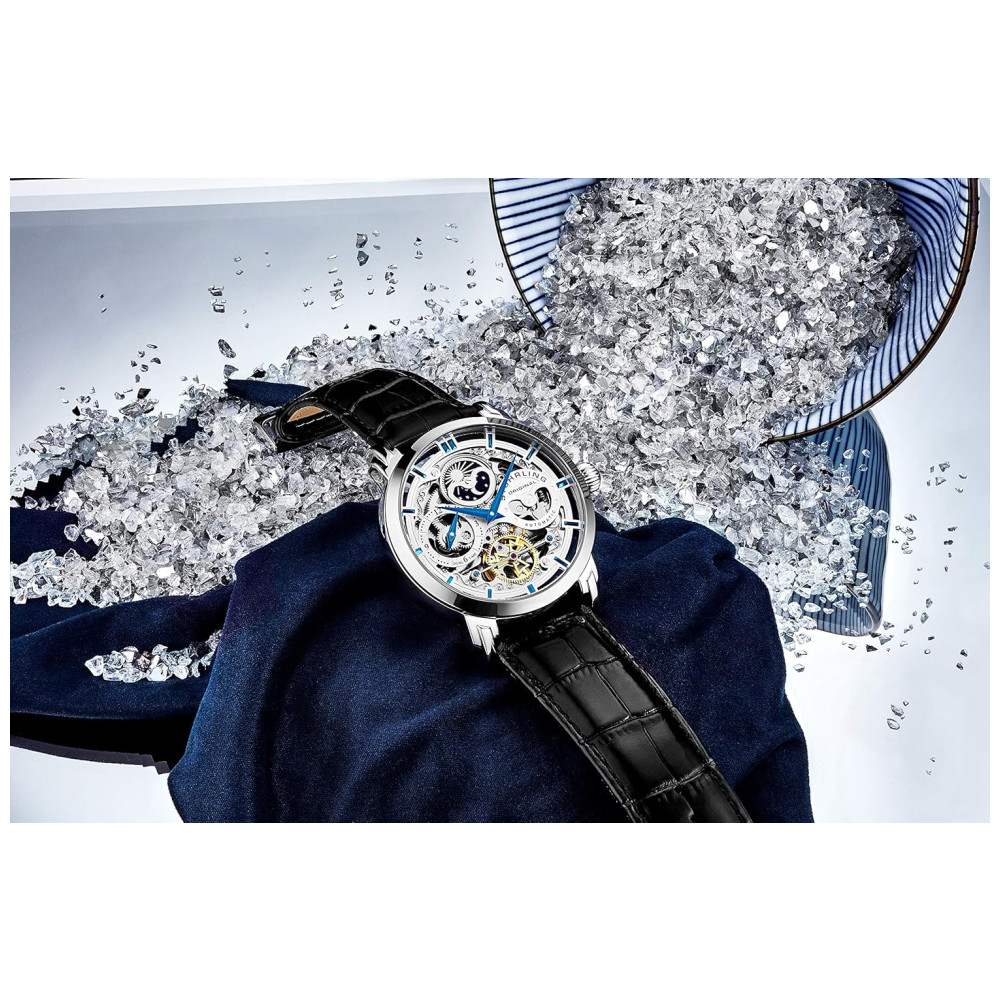 UMA JANELA NO TEMPO O estilo esqueleto permite que você observe visualmente o seu relógio marcar o tempo FAIXA DE COURO GENUÍNA em relevo de jacaré, pulseira de couro real de alta qualidade dos EUA, com de largura ESTILO E CONFORTO IMPRESSIONANTES O design luxuoso é atraente e confortável o suficiente para uso diário. WINDS PRÓPRIO usa tecnologia de mecanismo automático e seus movimentos naturais para dar corda.