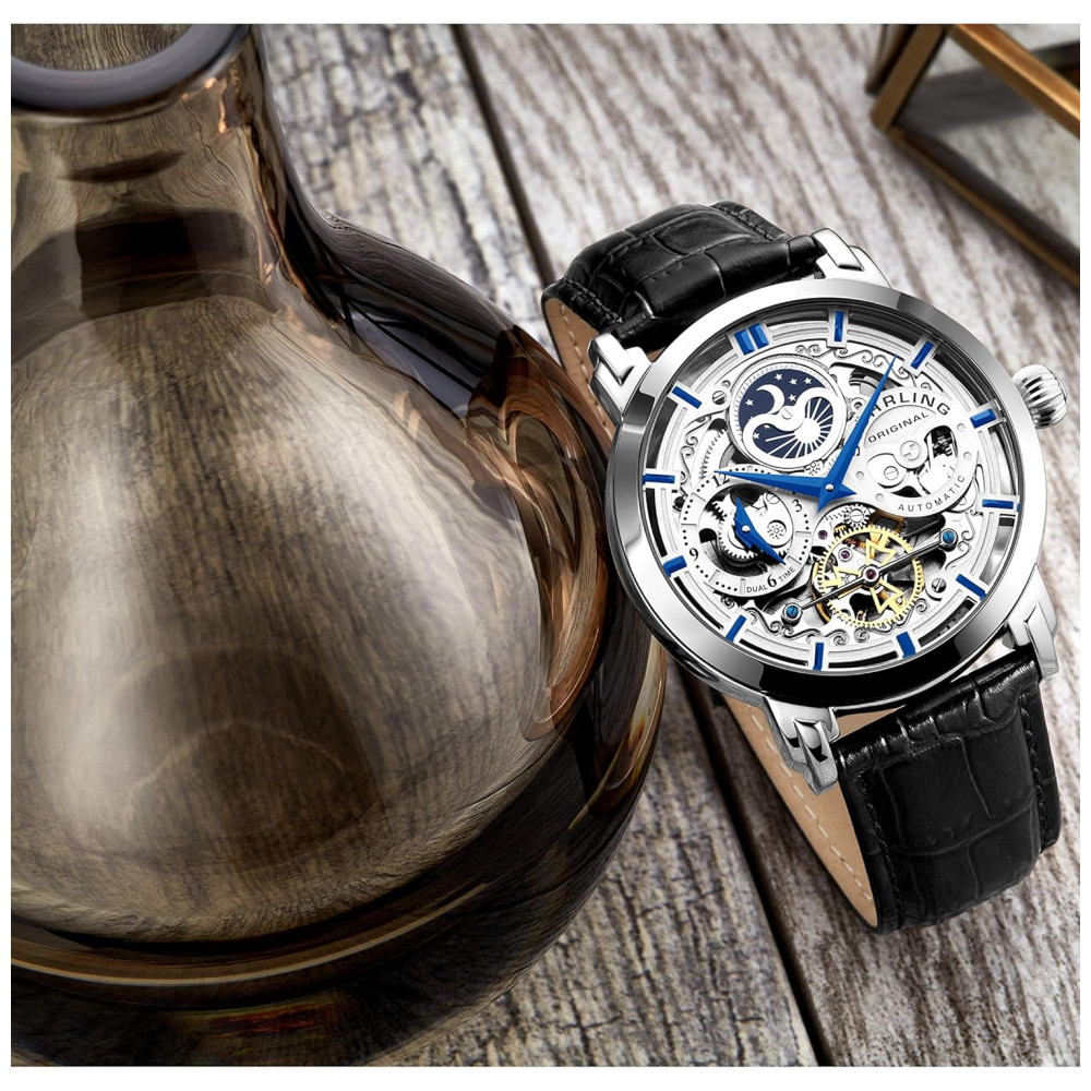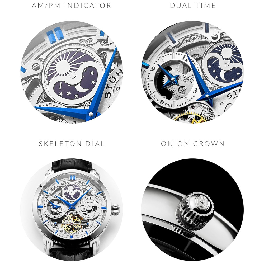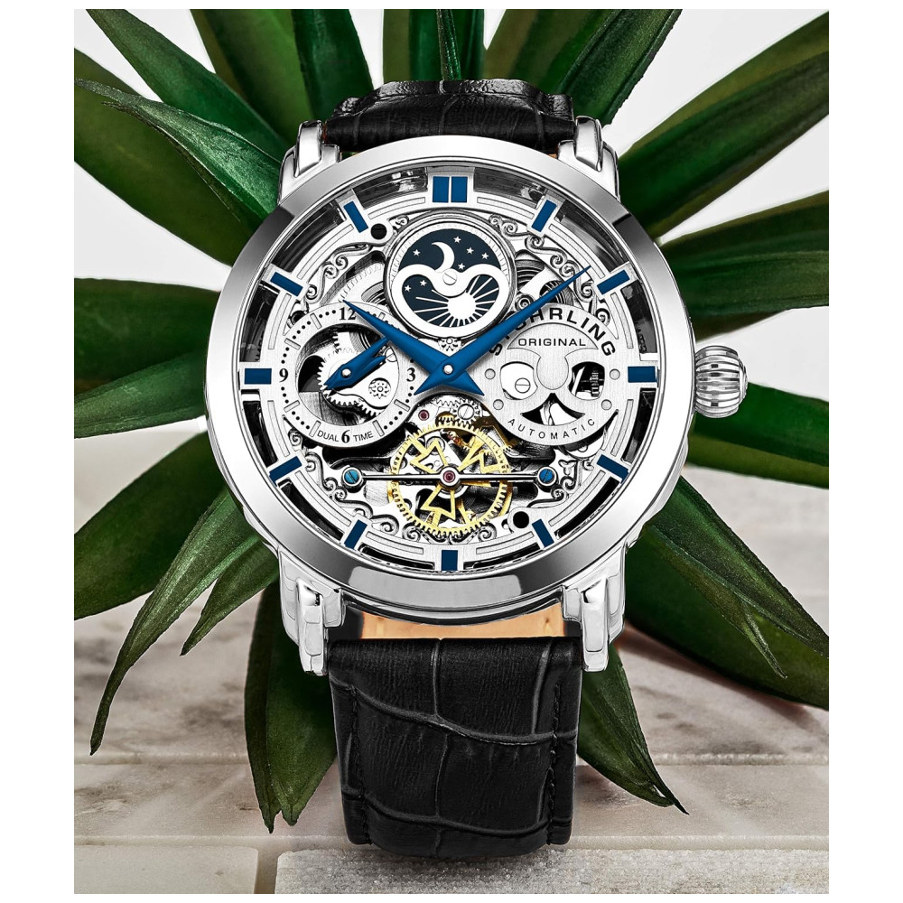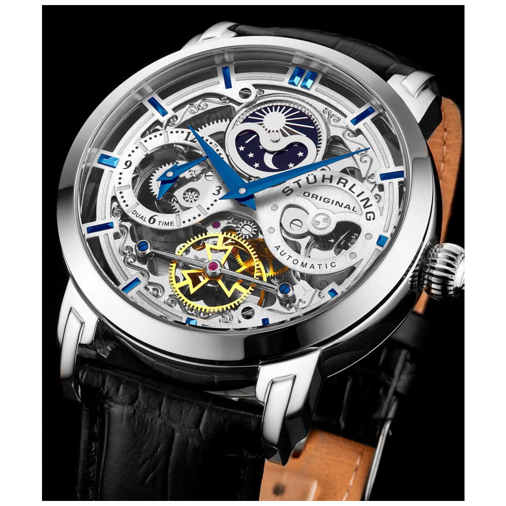 Relógio Masculino Automático Hora Dupla Resistente 50m STUHRLING 371.01 Preto