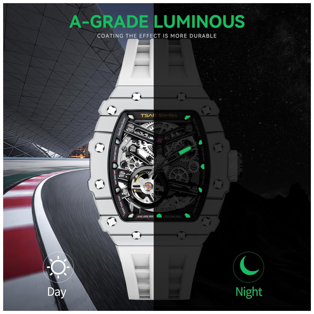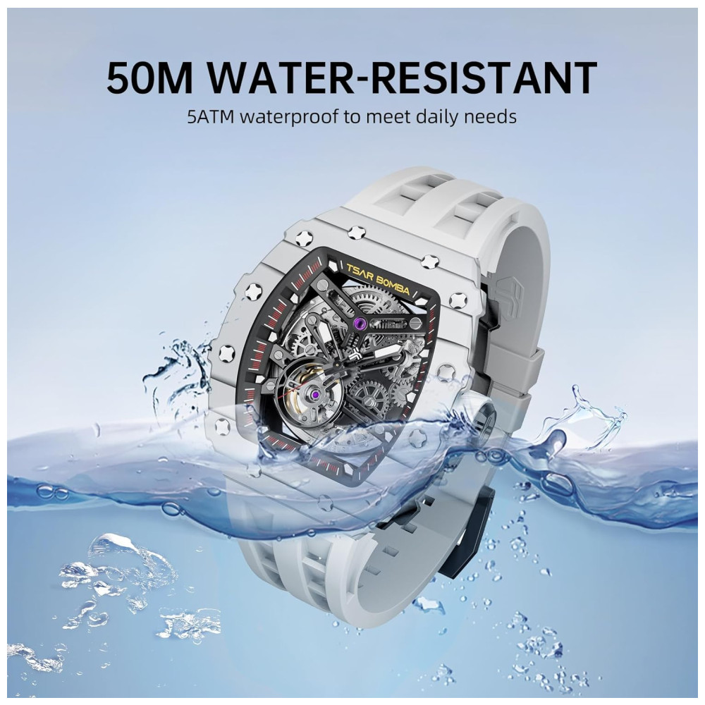 Relógio Masculino Automático Mecânico a Prova dÁgua 50M TSAR BOMBA Branco