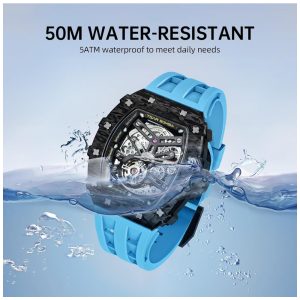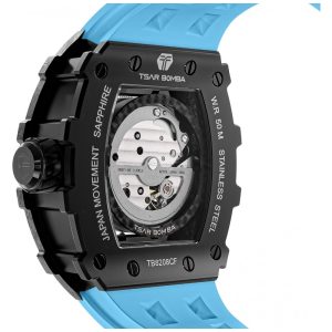 Relógio Masculino Automático Mecânico a Prova dÁgua 50M TSAR BOMBA TB 8208 Azul Claro