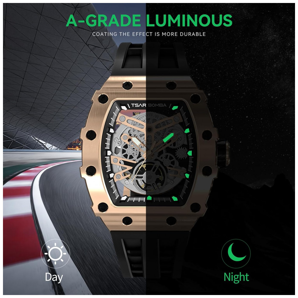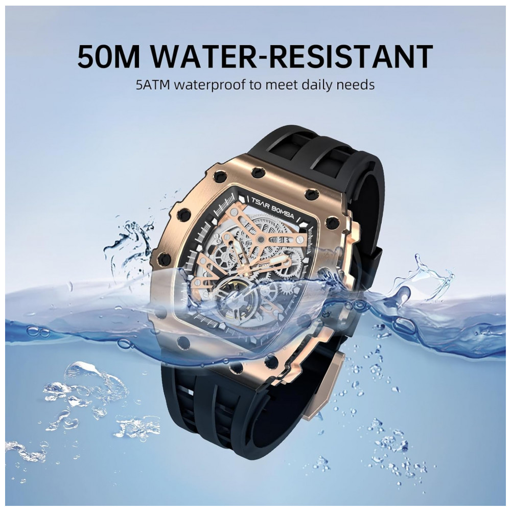 Relógio Masculino Automático Mecânico a Prova dÁgua 50M TSAR BOMBA TB 8208SGLZ Preto