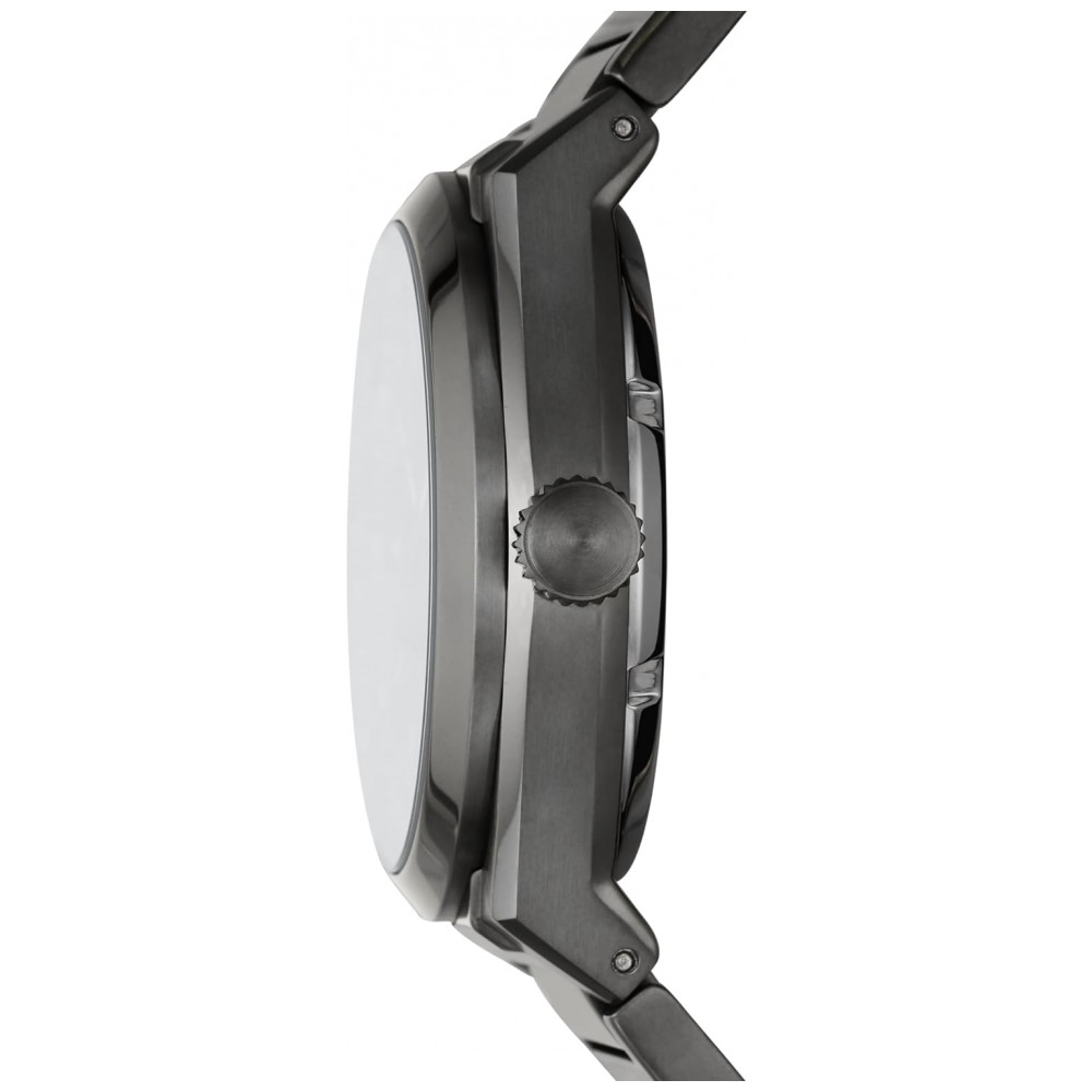 Caixa em aço inoxidável fumê com mostrador cinza pulseira de aço inoxidável fumê os links podem ser removidos para um ajuste personalizado intercambiável com todas as pulseiras Fossil de .