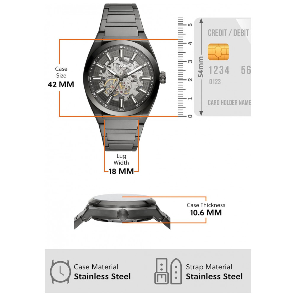 Relógio Masculino Automático Mostrador Mecânico com Pulseira de Aço Inoxidável Fossil ME3206 Preto