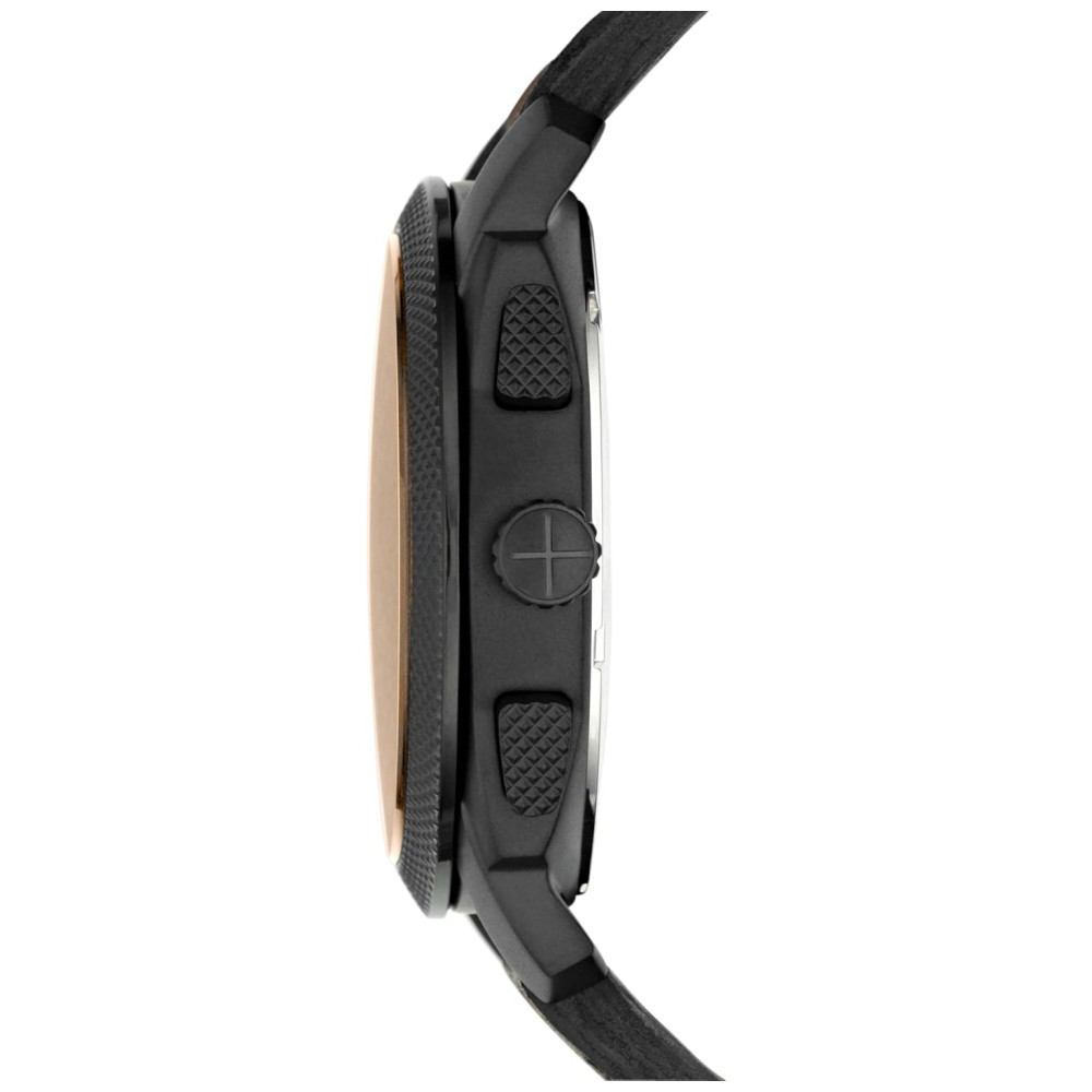 O acessório masculino definitivo, nosso relógio Machine é superdimensionado, robusto e imediatamente atraente graças ao seu anel superior recartilhado com uma pulseira de couro trançado.