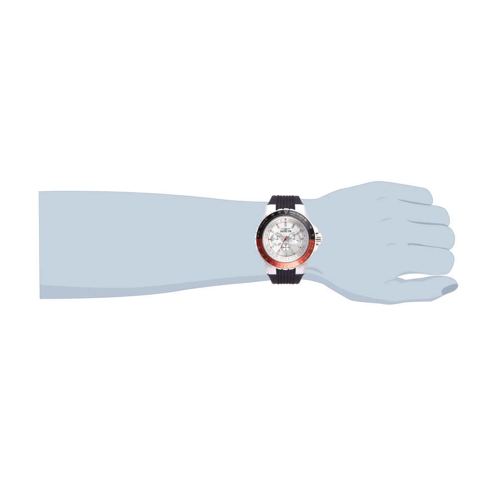 Este incrível relógio Invicta da coleção Aviator oferece um movimento Quartz exato, com uma incrível caixa de aço. O mostrador exibe um mostrador de metal prateado protegido pelo nosso exclusivo Flame Fusion Crystal. O design é completado por uma pulseira de silicone preta. Este relógio pode resistir à água até 100 m.
