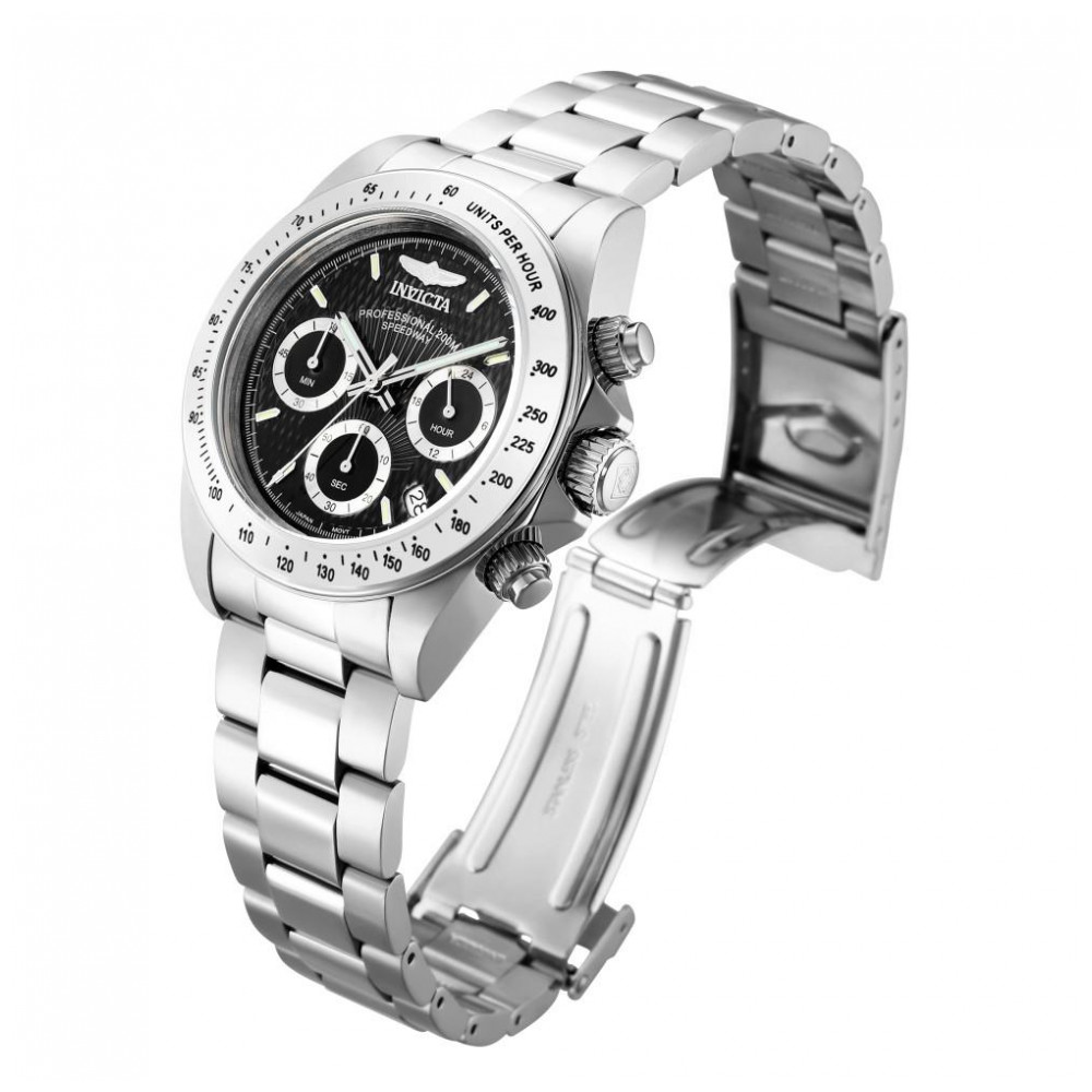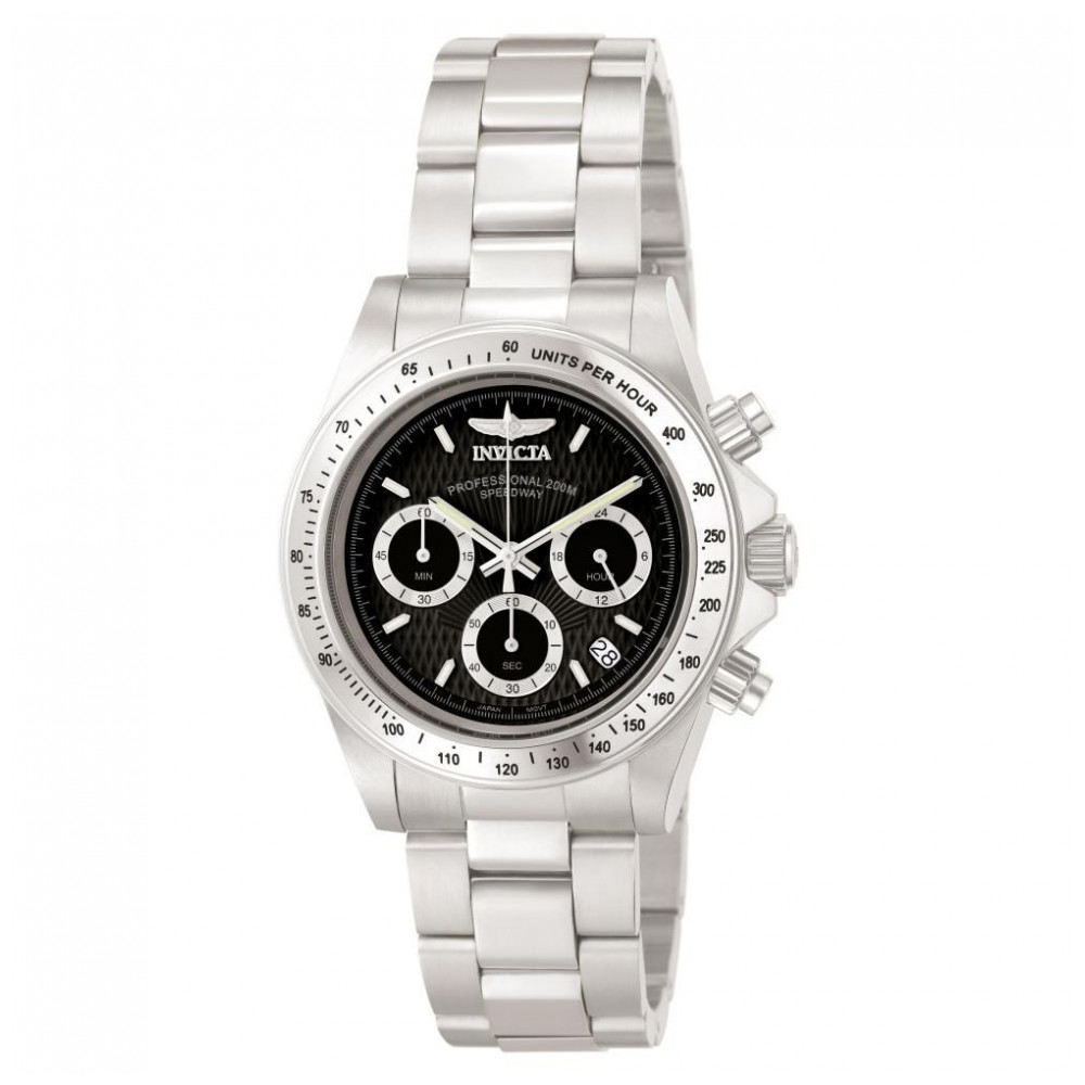 Transmitindo o tempo com a máxima sofisticação, tendo em mente as necessidades do desportista ativo, a coleção Invicta Speedway irá facilmente transpor para qualquer viagem. Movimentos do cronógrafo suíço, resistência à água de 200 metros, fundos de caixa aparafs, ponteiros luminosos Tritnite e mostradores texturizados são todos recursos incluídos nesses relógios primorosamente trabalhados. Um trunfo para qualquer atividade, permite que o Speedway se funda em sua vida esportiva e profissional.