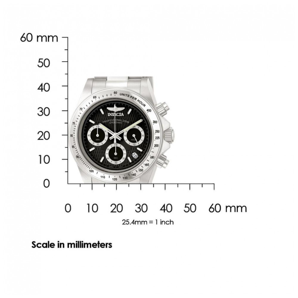 Este incrível relógio Invicta da coleção Speedway oferece um movimento de quartzo e uma sofisticada caixa de aço. O mostrador exibe um mostrador de metal preto protegido por nosso cristal mineral proprietário. O design é completado por uma banda de aço inoxidável prateado. Este relógio pode resistir à água por até 200m.