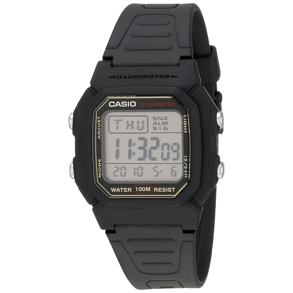 O relógio desportivo digital clássico masculino da Casio W800HG 9AV apresenta um estilo atlético tradicional e um display digital de fácil leitura. Com uma caixa de 41,5 milímetros, moldura e pulseira feita de resina preta, fecho de fivela e janela de plástico, este relógio oferece um mostrador digital cinza com uma luz, um dia, data e calendário do mês, um alarme e a opção para selecionar uma exibição de 12 ou 24 horas. Alimentado por movimento de quartzo digital, este relógio é resistente à água.