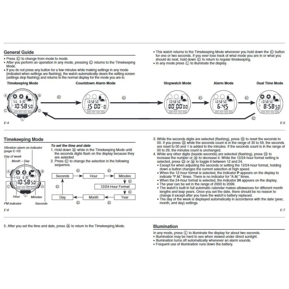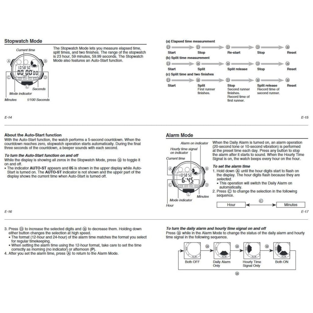 Cronômetro com funções de 1, 100 seg a 24 horas e cronômetro com funções de 1, 1 seg a 24 horas