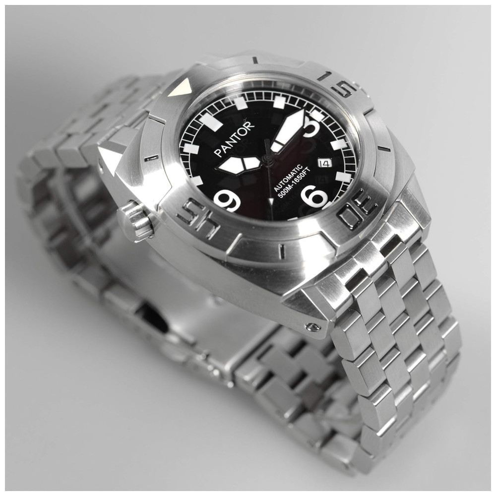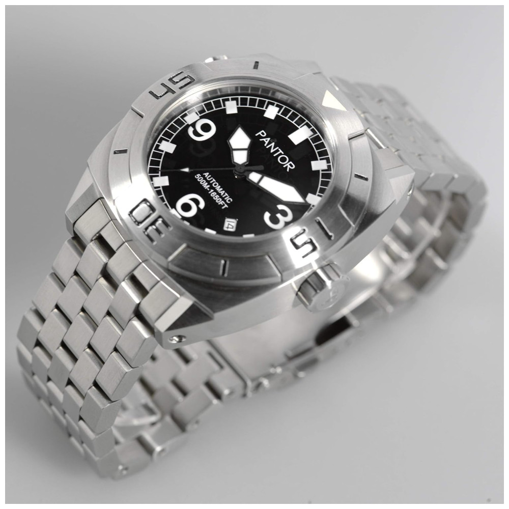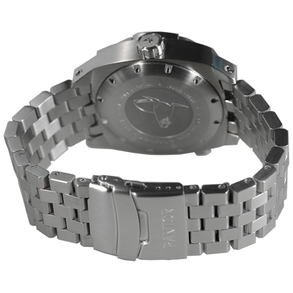 Relógio Masculino Dive com Cristal de Safira com Válvula de Hélio e Moldura Giratória PANTOR Seal Bracelet Prateado