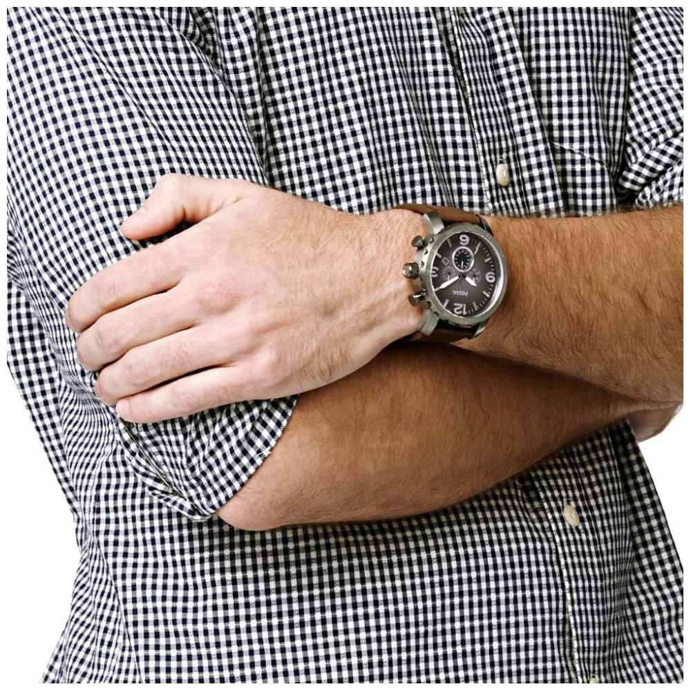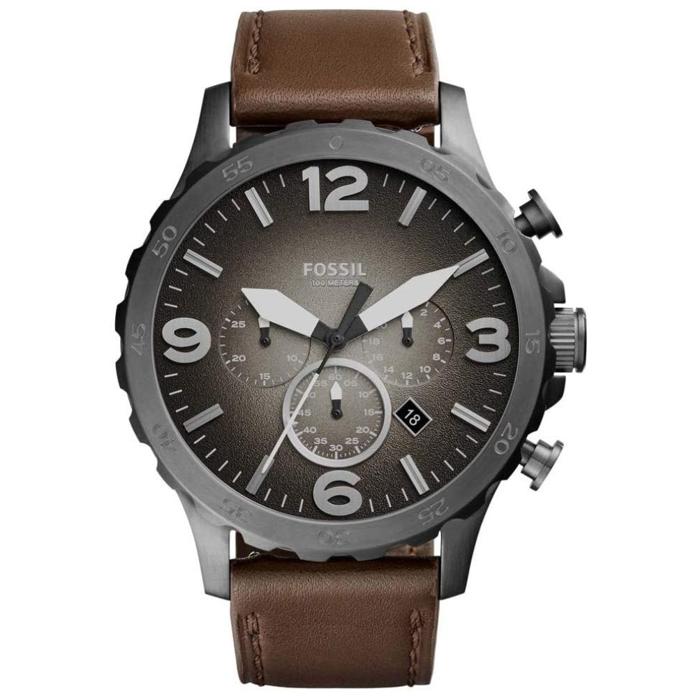 Imported Fossil is inspired by American creativity and ingenuity. Bringing new life into the watch and leathers industry by making quality, fashionable accessories that are both fun and accessible. For a bold, oversized look thats certain to be noticed, choose Nate Its clean, military inspired design with oversized lugs and bold details offers a laid backyet rugged feel that is perfect for any adventure, day or night. Round stainless steel case, with a black dial. 50mm case, 24mm band width, mineral crystal, Quartz movement with chronograph analog display, imported. Attachment Material, Color Genuine Leather, Brown Closure type Strap Buckle Interchangeable with all Fossil 24MM bands Water resistant to 330 feet 100 M suitable for bathing, swimming or snorkeling, but is not resistant enough to withstand scuba diving Customize your watch with complimentary engraving at a local Fossil store. Engraving is available at participating U.S. and Canadian full priced and outlet Fossil stores. This service is not applicable on all accessories.