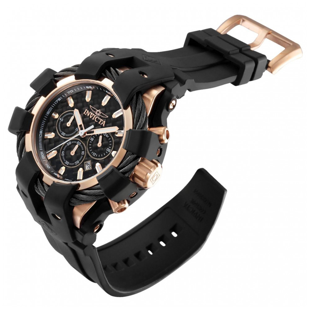 Este incrível relógio da coleção Bolt da Invicta oferece um movimento Quartz preciso, com uma incrível caixa preta em ouro rosa. O mostrador exibe um dial de metal e fibra de carbono preto protegido pelo nosso cristal mineral exclusivo. O design é completado por uma pulseira de silicone preta. Este relógio pode resistir à água por até 200 metros. Com nitidez de atitude e capacidade, o Invicta Bolt é um mestre da dominância. Movimentos perfeitamente sincronizados, engenharia de caixa complexa e design exclusivo de joias de corda ao redor do bisel causam uma impressão duradoura. Variações em materiais e acabamentos fornecem uma gama de opções para agradar a qualquer gosto. O Invicta Bolt, uma afirmação intransigente em cronometragem bem-sucedida, onde o poder se torna movimento harmonizado. Desde a sua fundação em La ChauxdeFonds, Suíça, em 1837, o compromisso com a excelência e inovação tem sido o cerne de cada coleção criada pela Invicta. Aqui na Invicta Stores, oferecemos o catálogo mais extenso de relógios desta magnífica marca, com os preços mais baixos online. Conosco, você encontrará um serviço ao cliente superior e um compromisso de longa data em oferecer o melhor valor do mercado. Em algumas instâncias, as cores nas imagens podem diferir ligeiramente do produto real.