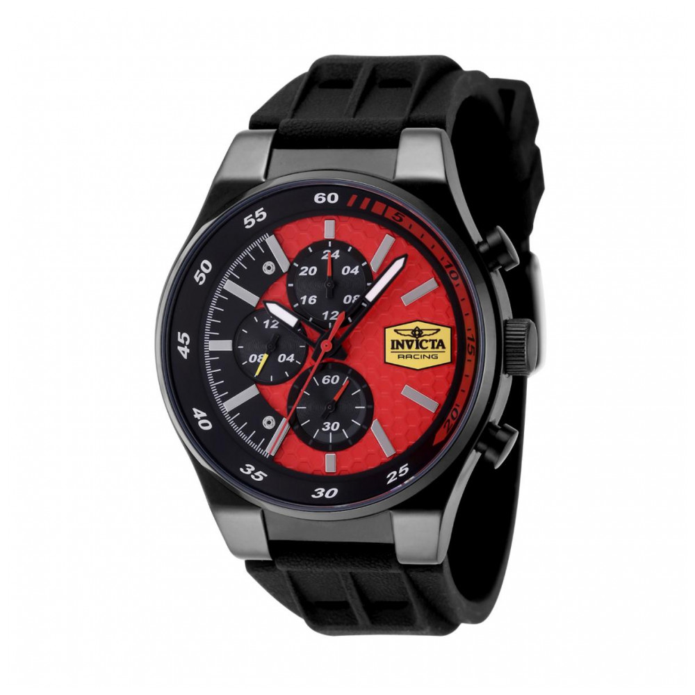 Este belo relógio Invicta Racing da Invicta apresenta um movimento de Quartzo preciso, além de uma caixa preta. Seu mostrador exibe um dial vermelho em latão protegido por um cristal mineral altamente resistente. Este cronógrafo é complementado por uma pulseira preta e oferece resistência à água de até 50 m. Desde sua fundação em 1837 até os dias atuais, a excelência inovadora tem sido o cerne de cada coleção ao longo da história da Invicta. Aqui na Invicta Stores, oferecemos a maior seleção de relógios Invicta em qualquer lugar online. Orgulhamo-nos do nosso atendimento ao cliente superior, nossa garantia de 3 anos e nosso compromisso em oferecer o melhor valor pelos menores preços. Em algumas instâncias, as cores nas imagens podem diferir ligeiramente do produto real.