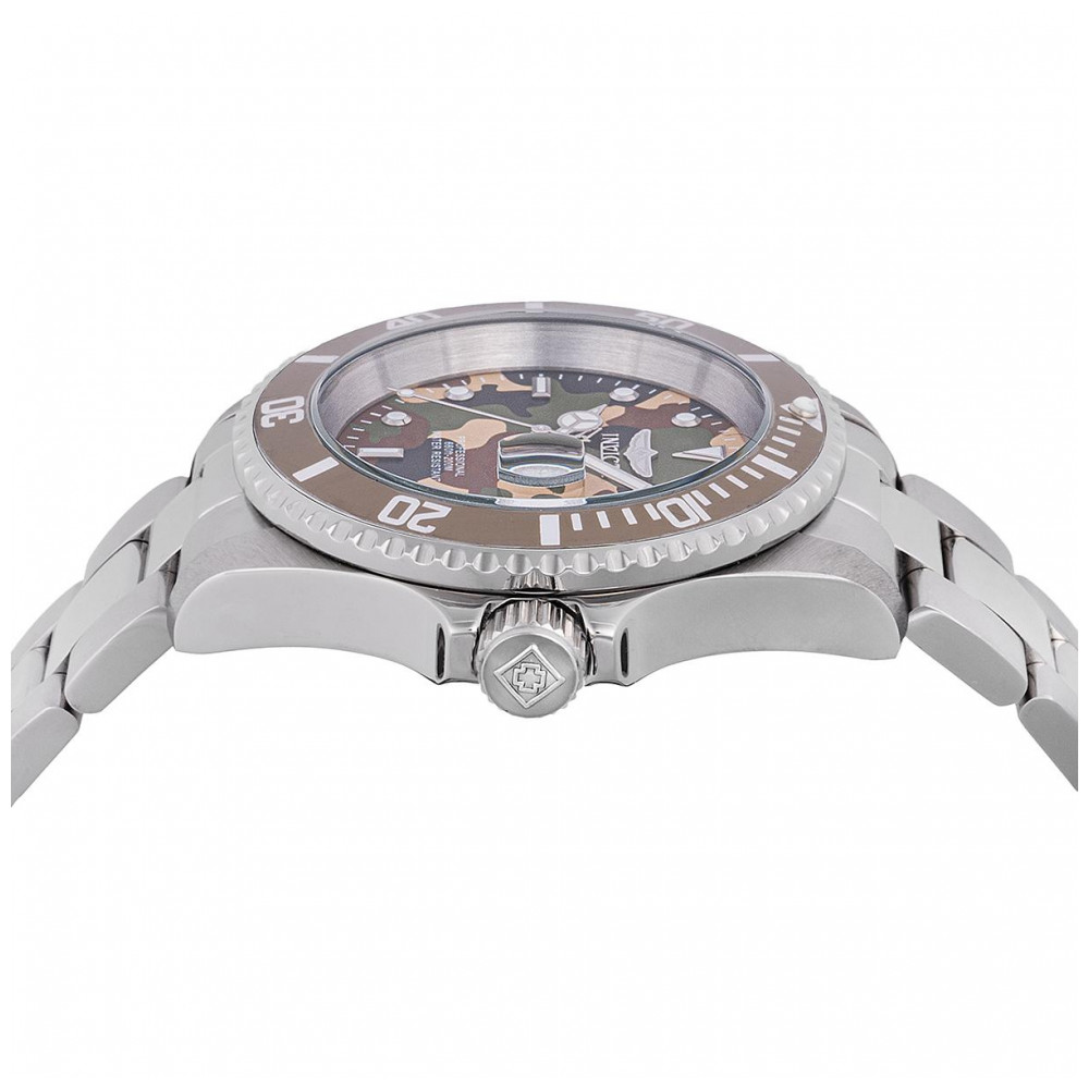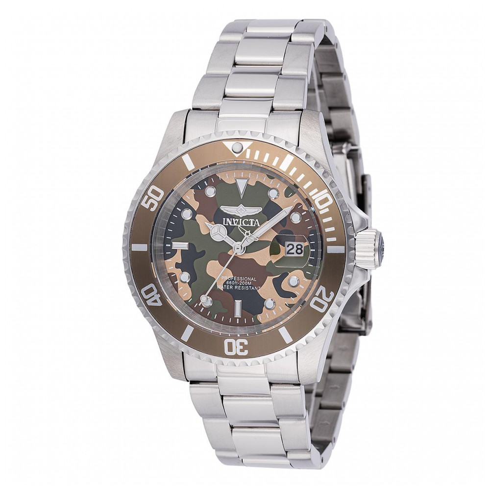 Este incrível relógio Invicta da coleção Pro Diver oferece um movimento Quartz preciso, com uma incrível caixa de aço. O mostrador exibe um padrão de camuflagem em tons de bege e verde, feito em latão e protegido por nosso cristal mineral exclusivo. O design é complementado por uma pulseira de aço. Este relógio suporta água até 200 metros de profundidade. Mergulhe em qualquer horizonte com a orientação firme do Invicta Pro Diver. Clássico e elegante, seu funcionamento interno é forjado com movimentos ousados. Construído com confiança, a firmeza com que esses relógios funcionam torna o Pro Diver o essencial em desempenho. Da fundação da Invicta há mais de um século até os dias atuais, a inovação e a excelência sempre estiveram no cerne de cada era e coleção ao longo da história da marca. Aqui nas lojas Invicta, você encontrará a maior seleção de relógios Invicta em qualquer lugar online, além de um serviço ao cliente superior e o melhor valor sempre. Em algumas ocasiões, as cores nas imagens podem variar ligeiramente do produto real.