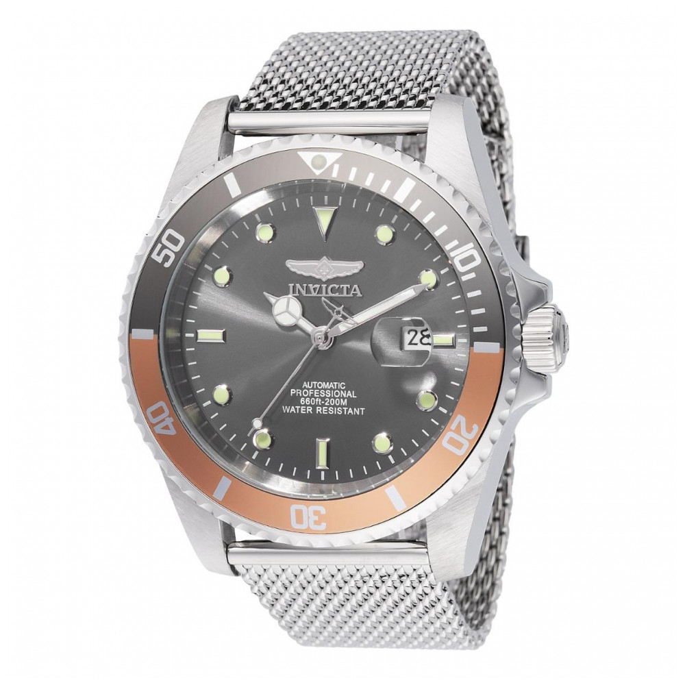 Este impressionante relógio Invicta Pro Diver possui um movimento Automático preciso, além de uma caixa de aço. Seu mostrador cinza de latão é protegido por um cristal mineral altamente resistente. Este relógio é finalizado por uma resistente pulseira de aço, oferecendo resistência à água de 200 m. Mergulhe em qualquer horizonte usando a orientação firme do Invicta Pro Diver. Com design clássico e funcionamento interno com movimentos ousados, este relógio combina estilo e desempenho. A fundação da Invicta há mais de um século até os dias atuais é marcada por inovação e excelência, refletidas em cada era e coleção da marca. Descubra a maior seleção de relógios Invicta online, juntamente com um excelente atendimento ao cliente e o melhor valor. Em algumas ocasiões, as cores nas imagens podem variar ligeiramente do produto real.