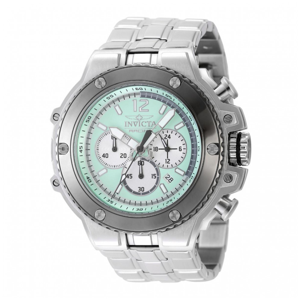 Este belo relógio masculino Invicta Racing apresenta um movimento preciso de quartzo, além de uma caixa de aço e titânio. Seu mostrador exibe uma tonalidade turquesa e prateada, protegido por um cristal mineral altamente resistente. Este acessório é complementado por uma pulseira de aço e oferece resistência à água de até 200 metros. Construindo cada relógio para os corações destemidos, os relógios Invicta são uma demonstração exemplar de versatilidade, estabelecendo um precedente para enfrentar as atividades mais aventureiras. Aqui na Invicta Stores, nos orgulhamos do nosso serviço ao cliente superior, dos nossos 3 anos de garantia e do nosso compromisso em oferecer o melhor valor pelos preços mais baixos. Explore o catálogo mais extenso da Invicta em qualquer lugar online e encontre o seu próximo favorito. Em algumas situações, as cores nas imagens podem variar ligeiramente do produto real.