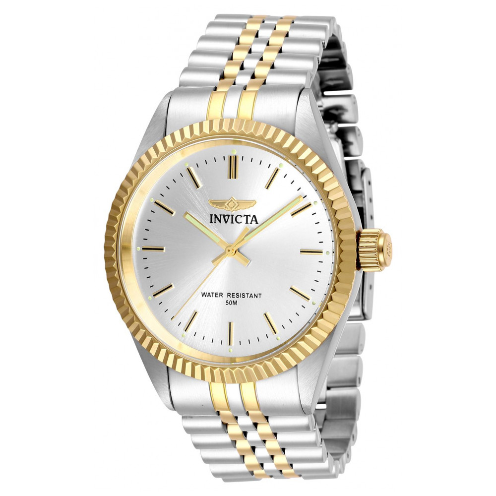 Este belo relógio da coleção Invicta Specialty contém um movimento preciso de quartzo, além de um estojo dourado e de aço. Seu mostrador exibe uma combinação prateada de metal protegida por um cristal mineral altamente resistente. Este acessório é complementado por uma pulseira de aço, dourada e de aço inoxidável, oferecendo resistência à água de até 50 metros. Comunicando o tempo com uma inovação engenhosa, a coleção Invicta Specialty é o exemplo brilhante de invenção em movimento. Esta coleção captura a revelação da intuição em peças transcendentais que melhor retratam a própria natureza do tempo. Reconhecida por designs únicos, movimentos estelares e artesanato superior, Invicta Specialty habita o limiar da relojoaria, onde mentes criativas transformam complicações em desafios e fazem história, uma obra-prima de cada vez. Desde a sua criação em La ChauxdeFonds, Suíça, em 1837, um compromisso com a excelência e inovação tem sido o cerne de cada coleção criada pela Invicta. Aqui na Invicta Stores, oferecemos o catálogo mais extenso de relógios desta magnífica marca, com os preços mais baixos online. Com a gente, você encontrará um serviço de atendimento ao cliente superior, uma garantia de 3 anos e um compromisso de longa data em oferecer o melhor valor disponível. Em algumas ocasiões, as cores nas imagens podem diferir ligeiramente do produto real.