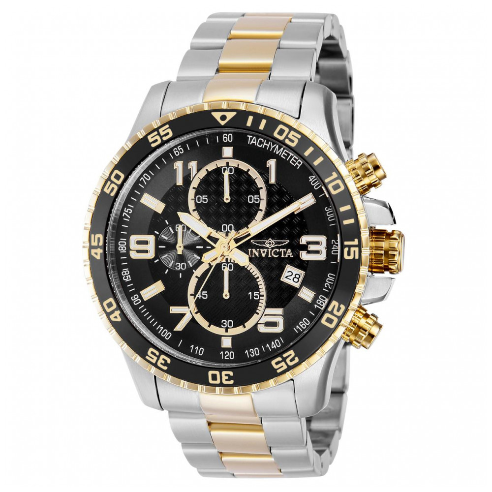 Apresentamos o relógio masculino Invicta Specialty, o acessório perfeito para homens que valorizam estilo e funcionalidade. Com design elegante, caixa de 45mm em aço dourado, mostrador preto, funções de luneta unidirecional e coroa push, este relógio é a combinação ideal de sofisticação e durabilidade. Além disso, possui marcadores luminosos brancos em tritnite, garantindo visibilidade em ambientes com pouca luz. Seja para o dia a dia ou eventos especiais, este relógio é a escolha ideal para quem busca qualidade e estilo.